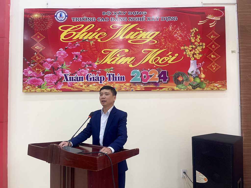 Phát biểu trong buổi gặp mặt, đồng chí Vũ Xuân Quyên – Bí Thư Đảng uỷ, Chủ tịch Hội đồng trường, Phó Hiệu trưởng Nhà trường đã biểu dương những kết quả mà Nhà trường, các đơn vị và cá nhân, các Thầy, Cô giáo đã đạt được trong năm qua, đồng thời cũng nêu ra những nhiệm vụ chủ yếu trong thời gian tới. Trong không khí vui mừng chào năm mới, đồng chí Vũ Xuân Quyên cũng đã trang trọng gửi lời chúc đầu xuân mới tốt đẹp nhất, chúc một mùa xuân mới đầy thắng lợi, vạn sự như ý tới toàn thể cán bộ, viên chức, người lao động và học sinh, sinh viên Nhà trường với hy vọng một năm mới tập thể Trường Cao đẳng nghề Xây dựng đoàn kết, vượt qua mọi khó khăn đưa Nhà trường phát triển và phát triển bền vững, bước lên một tầm cao mới.