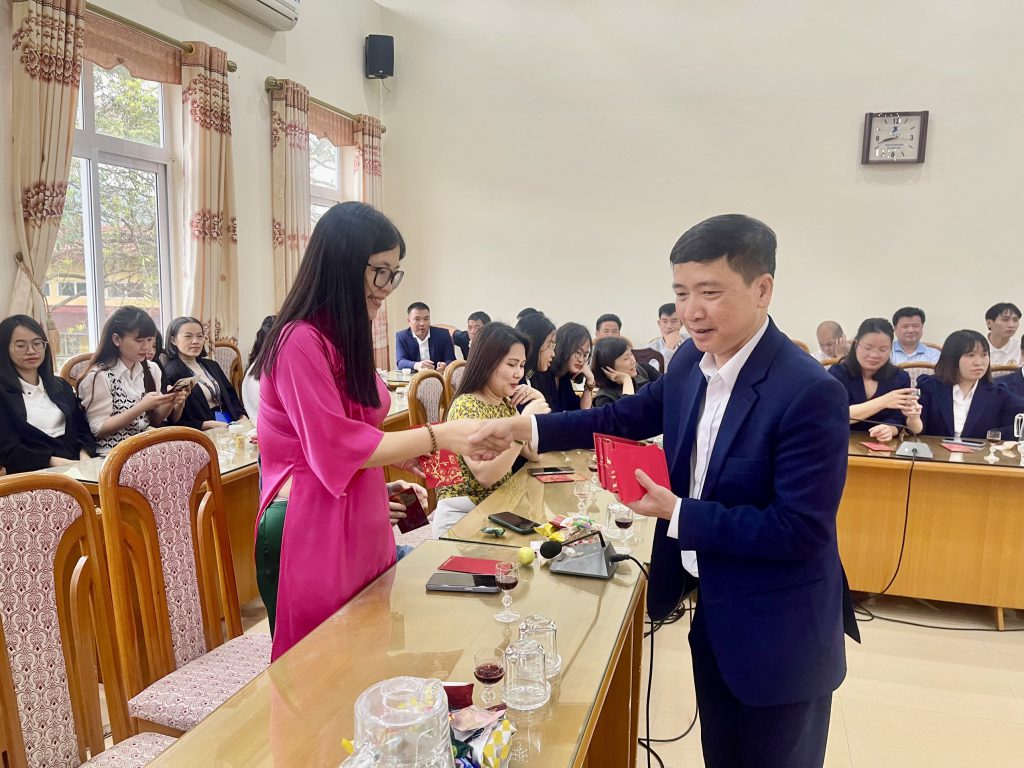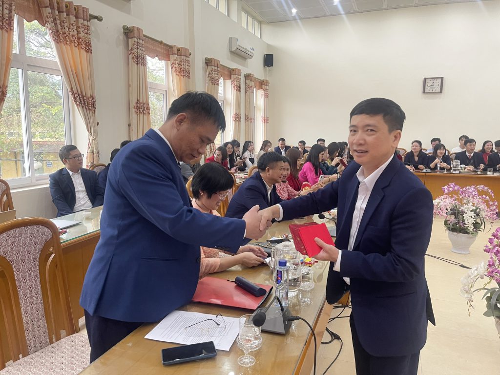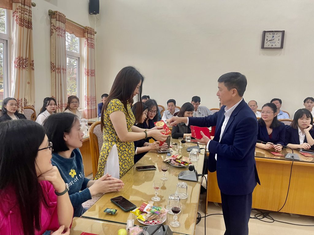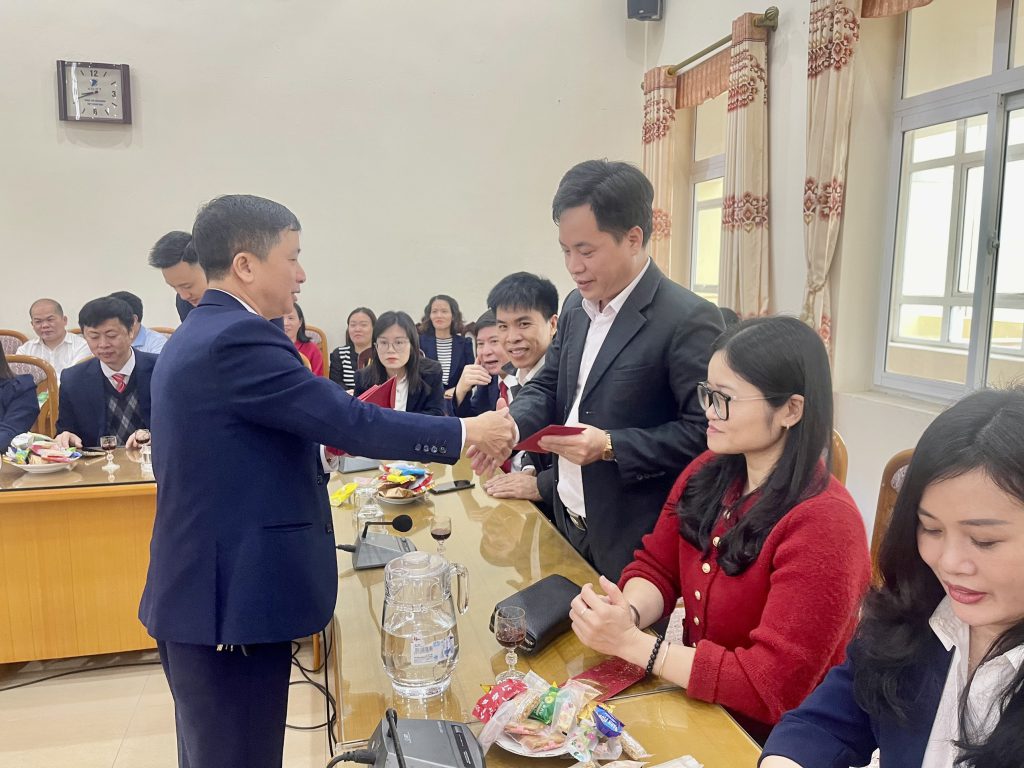 Ban giám hiệu tặng lì xì cho cán bộ, công nhân viên nhà trường