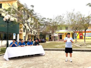 Tham dự chương trình có thầy Vũ Xuân Quyên – Phó Bí thư đảng ủy, Phó Hiệu trưởng Nhà trường; Ban Chấp hành Đoàn trường, các thầy cô giáo cùng đông đảo các vận động viên là học sinh đến từ các chi đoàn trong toàn trường.
