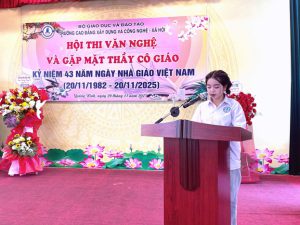 Để bày tỏ lòng tri ân tới các Thầy cô giáo, những người đã và đang miệt mài với sự nghiệp trồng người. Thay mặt cho các em học sinh – sinh viên của Nhà trường, em Đặng Thùy Linh lớp 25TCA – TQ1 nghề Tiếng Trung đại diện cho các bạn học sinh – sinh viên phát biểu những tình cảm tri ân dành tặng cho Thầy, cô giáo.