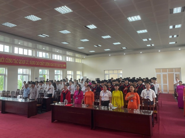 Buổi lễ có sự hiện diện của Th.s Vũ Xuân Quyên – Bí thư Đảng ủy, Phó Hiệu trưởng Nhà trường; Lãnh đạo các đơn vị Phòng, Khoa, Trung tâm; Ban đại diện cha mẹ học sinh và giáo viên chủ nhiệm các lớp và các em học sinh được công nhận tốt nghiệp và nhận bằng tốt nghiệp trình độ Trung cấp các ngành nghề như: Điện công nghiệp; Điện dân dụng; Cấp, thoát nước; Điện – nước; Công nghệ thông tin; Kế toán doanh nghiệp; Kỹ thuật xây dựng; Kỹ thuật chế biến món ăn; May thời trang… khóa 55 (2022 – 2024).