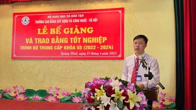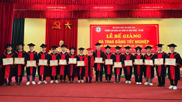 Thực hiện nhiệm vụ công tác đào tạo năm học 2024 – 2025. Ngày 25 tháng 4 năm 2025, Trường Cao đẳng Xây dựng và Công nghệ – Xã hội long trọng tổ chức Lễ Bế giảng và trao bằng tốt nghiệp cho các em học sinh trình độ Trung cấp khóa 55 (2022 – 2024).