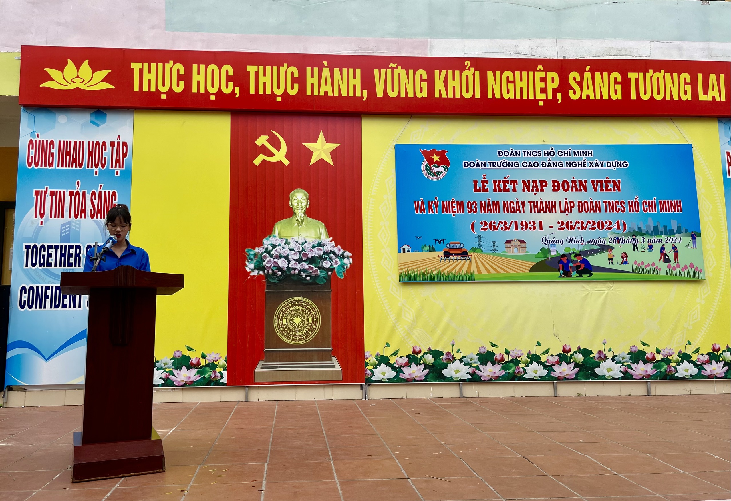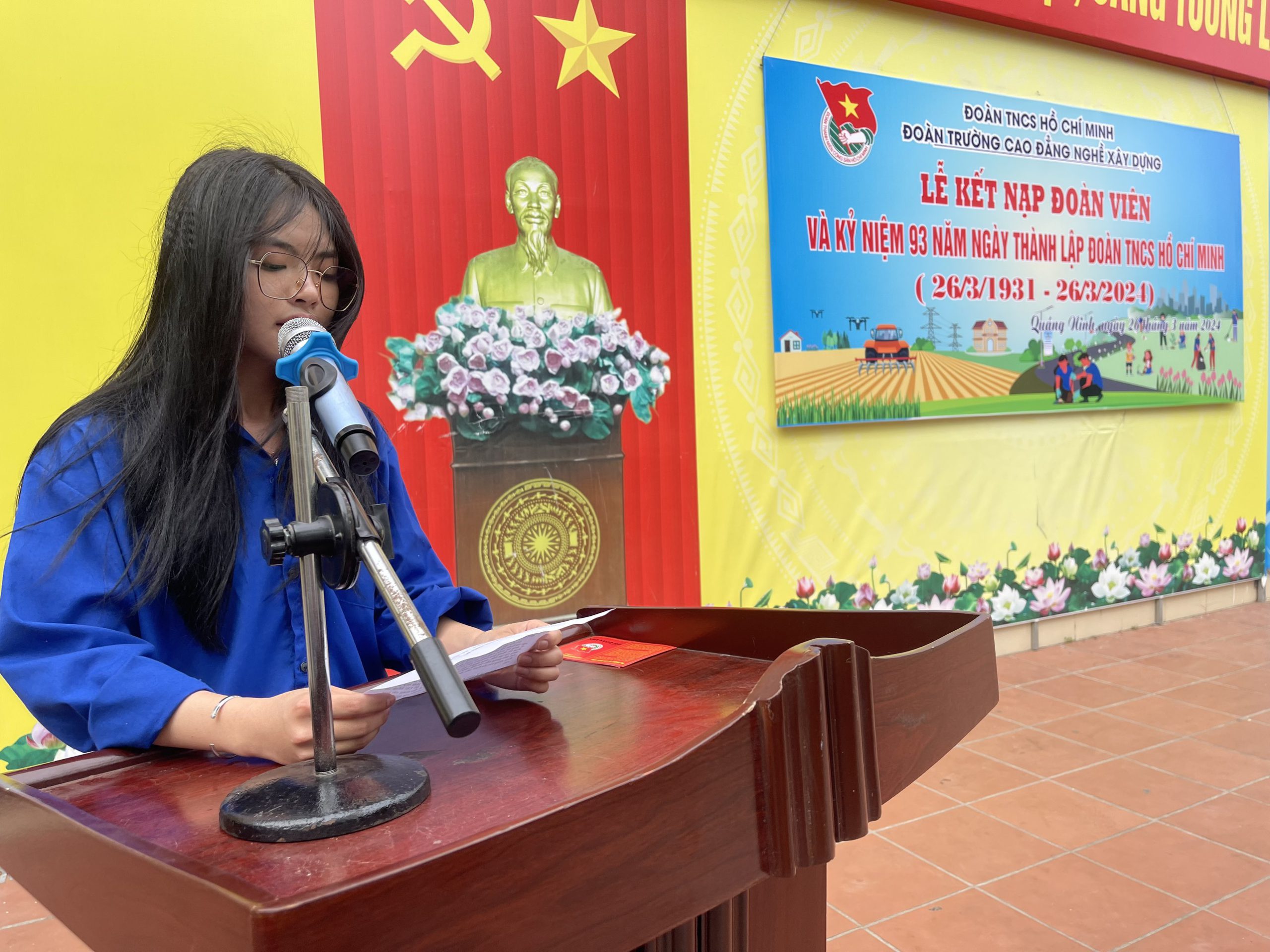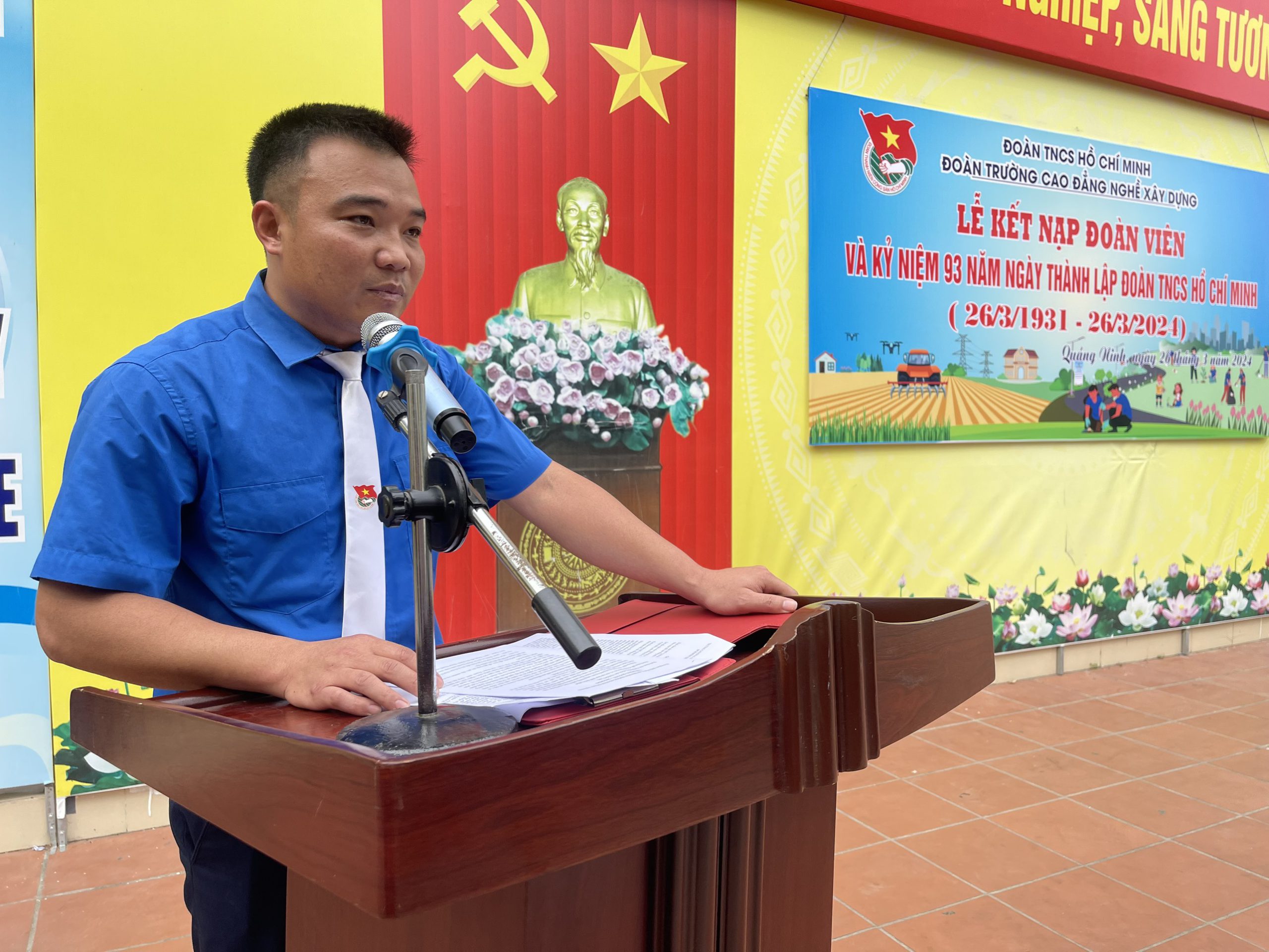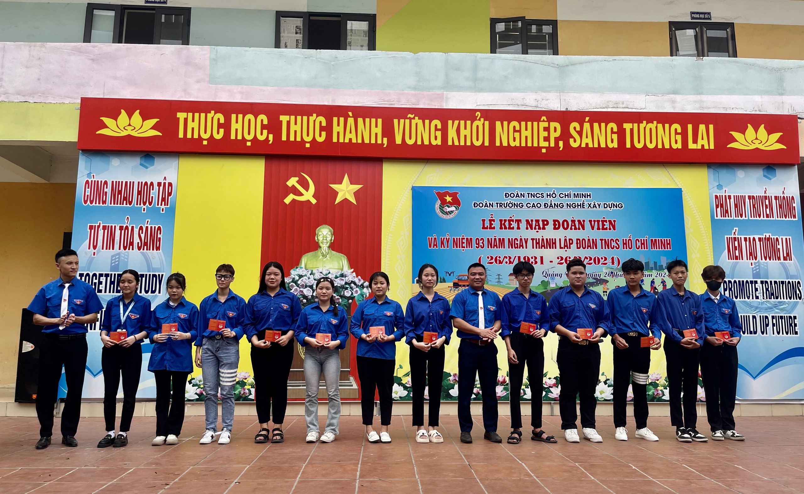 Nhân dịp kỷ niệm 93 năm ngày thành lập Đoàn, Ban chấp hành Đoàn trường tổ chức Lễ kết nạp đoàn viên mới. Tại buổi lễ, đồng chí Nguyễn Duy Cường – Ủy viên Ban chấp hành Đoàn trường tóm tắt quá trình phấn đấu, trưởng thành của các thanh niên ưu tú được xét kết nạp đoàn và công bố Quyết định chuẩn y kết nạp đoàn cho 110 thanh niên ưu tú của Nhà trường.