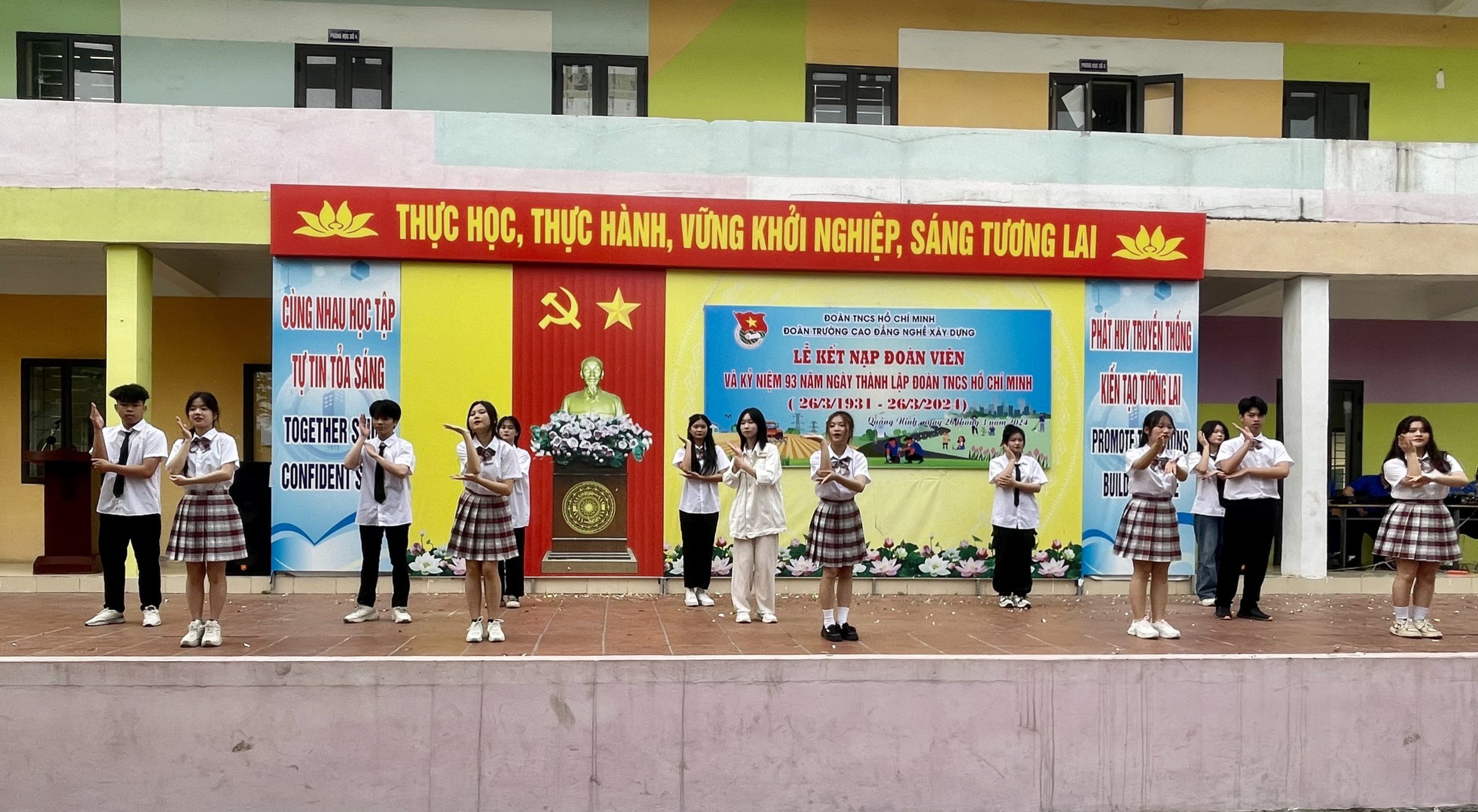 Được sự nhất trí của Đảng ủy, Ban giám hiệu Nhà trường. Ngày 26/3/2024 tại Trường Cao đẳng nghề Xây dựng Ban chấp hành Đoàn thanh niên tổ chức Lễ kết nạp Đoàn viên và Kỷ niệm 93 năm ngày thành lập Đoàn Thanh niên Cộng sản Hồ Chí Minh (26/3/1931 – 26/3/2024). Hướng tới lễ kỷ niệm có rất nhiều hoạt động vô cùng bổ ích được tổ chức trong suốt tháng Thanh niên như: Thi đấu bóng chuyền, kéo co, giao lưu văn nghệ …