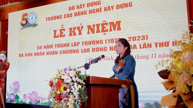 Phát biểu khai mạc tại Lễ kỷ niệm, TS. Nguyễn Thị Hoài – Hiệu trưởng Nhà trường đã xúc động bày tỏ lòng biết ơn và tri ân sâu sắc đối với các thế hệ Lãnh đạo, cán bộ nhà giáo, viên chức và người lao động Nhà trường qua các thời kỳ đã tạo dựng, bồi đắp để xây dựng mái trường Cao đẳng nghề Xây dựng với thương hiệu, uy tín như ngày hôm nay. Đồng thời khẳng định với sự đoàn kết, nỗ lực của toàn thể CBGV CNV Nhà trường quyết tâm xây dựng Trường Cao đẳng nghề Xây dựng trở thành trường Cao đẳng chất lượng cao.