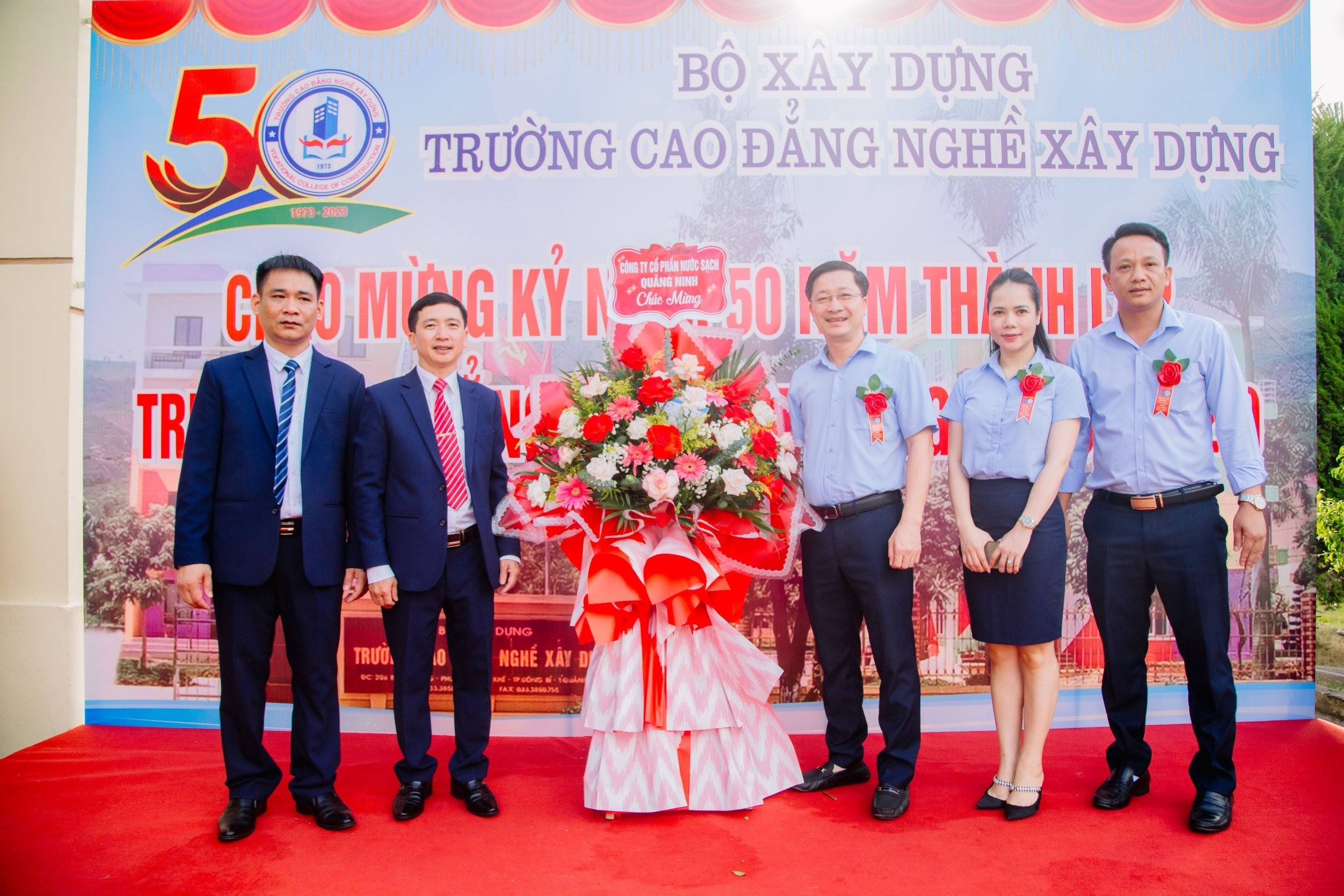 Dự chúc mừng có các đồng chí: Nguyễn Thanh Nghị, Uỷ viên TW Đảng, Bí thư Ban cán sự Đảng, Bộ trưởng Bộ Xây dựng; Cao Tường Huy, Ủy viên Ban thường vụ Tỉnh ủy, Quyền Chủ tịch UBND tỉnh Quảng Ninh; Đỗ Năng Khánh, Phó Tổng cục trưởng, Tổng cục Giáo dục nghề nghiệp; Nguyễn Thanh Tùng, Uỷ viên BCH Tổng liên đoàn Lao động Việt Nam, Chủ tịch Công đoàn Xây dựng Việt Nam; Phạm Tuấn Đạt, Phó Bí thư Thành ủy, Chủ tịch UBND thành phố Uông Bí.