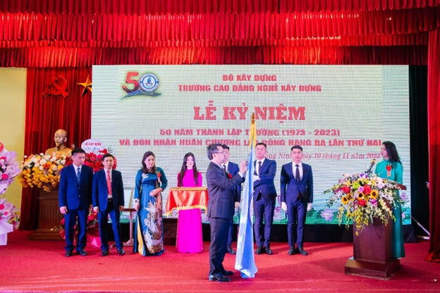 Sáng ngày 10/11/2023, trong không khí vui mừng và tự hào, Trường Cao đẳng nghề Xây dựng đã long trọng tổ chức Lễ kỷ niệm 50 năm ngày thành lập trường (1973 – 2023) và đón nhận Huân chương lao động Hạng Ba lần hai.