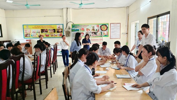 Tại buổi làm việc, đoàn công tác đã tham quan cơ sở vật chất, trang thiết bị phục vụ đào tạo, kết hợp báo cáo của Nhà trường về tình hình tổ chức và hoạt động đào tạo của Nhà trường; đội ngũ cán bộ quản lý, giảng viên; kết quả tuyển sinh, tốt nghiệp và giải quyết việc làm từ năm 2023 đến nay. Đồng thời trao đổi và tiến hành phỏng vấn nhanh một số giảng viên, học sinh của Nhà trường.