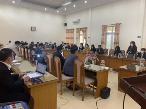 Ngay sau phần khai mạc, thầy Đinh Công Bắc chủ trì đợt tập huấn với các nội dung cụ thể: giới thiệu bộ tiêu chí, tiêu chuẩn theo quy định tại thông tư số 15/2017/TT-BLĐTBXH; hướng dẫn cơ sở phân công nhiệm vụ các thành viên trong Hội đồng Tự đánh giá; tập huấn kỹ năng phân tích nội hàm tiêu chuẩn và kỹ năng thu thập, mã hoá, sử dụng và lưu trữ minh chứng theo tiêu chuẩn.