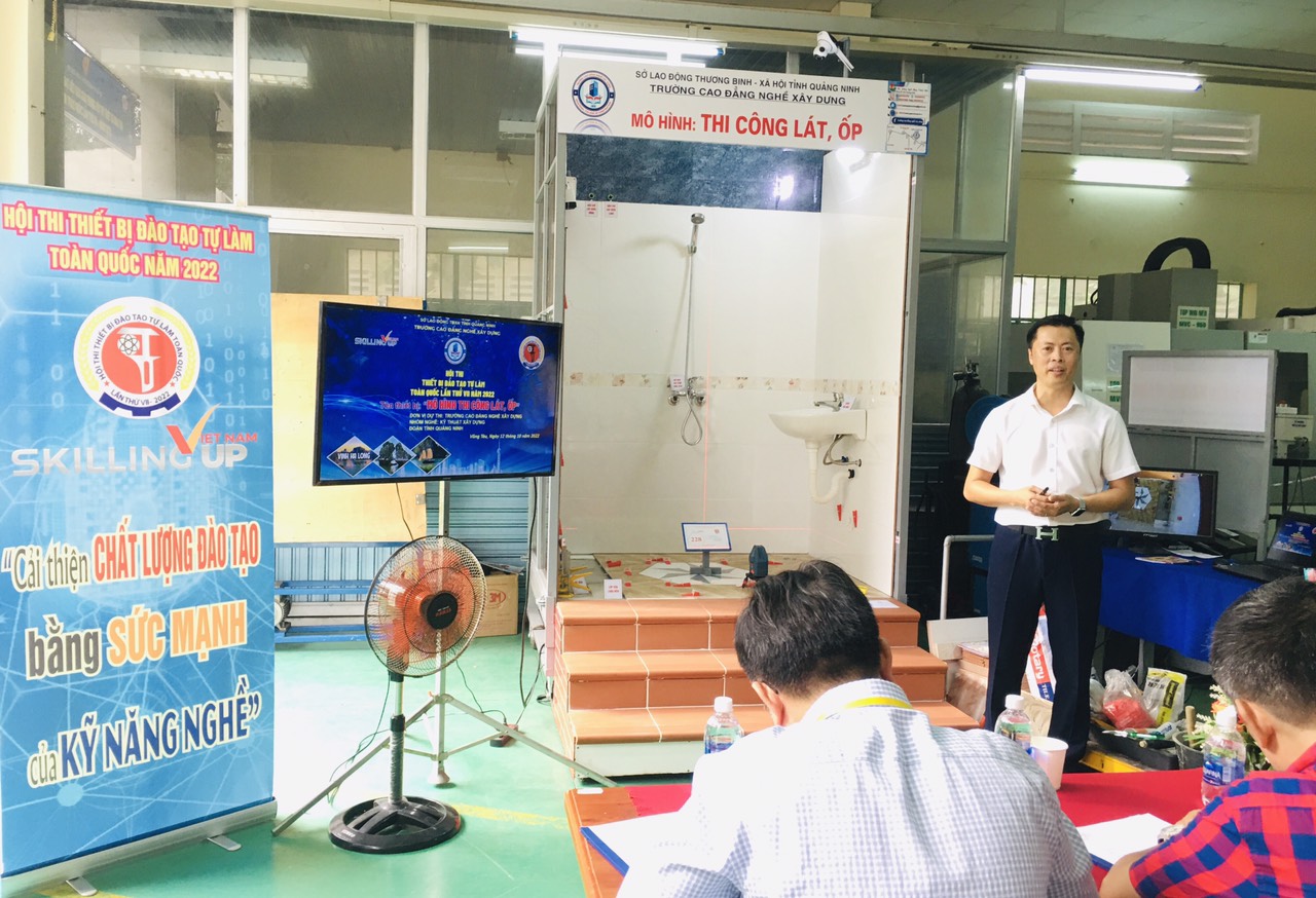 Tham dự hội thi lần này, Trường Cao đẳng nghề Xây dựng là một trong những thành viên của đoàn Tỉnh Quảng Ninh cũng có 2 thiết bị tham dự: Mô hình thi công “Lát, ốp”; Mô hình thi công lắp dựng ván khuôn cột định hình nghề Kỹ thuật Xây dựng.