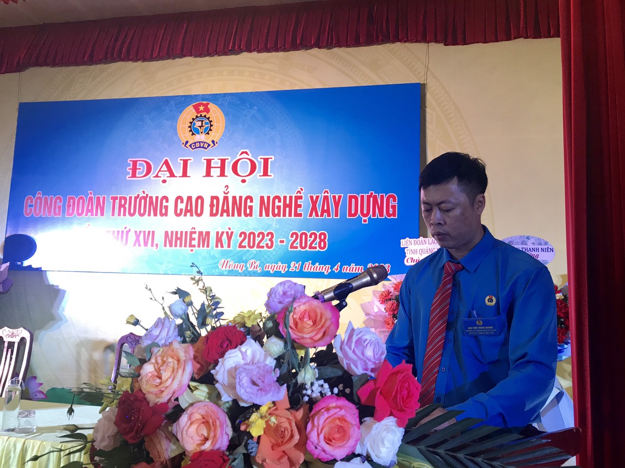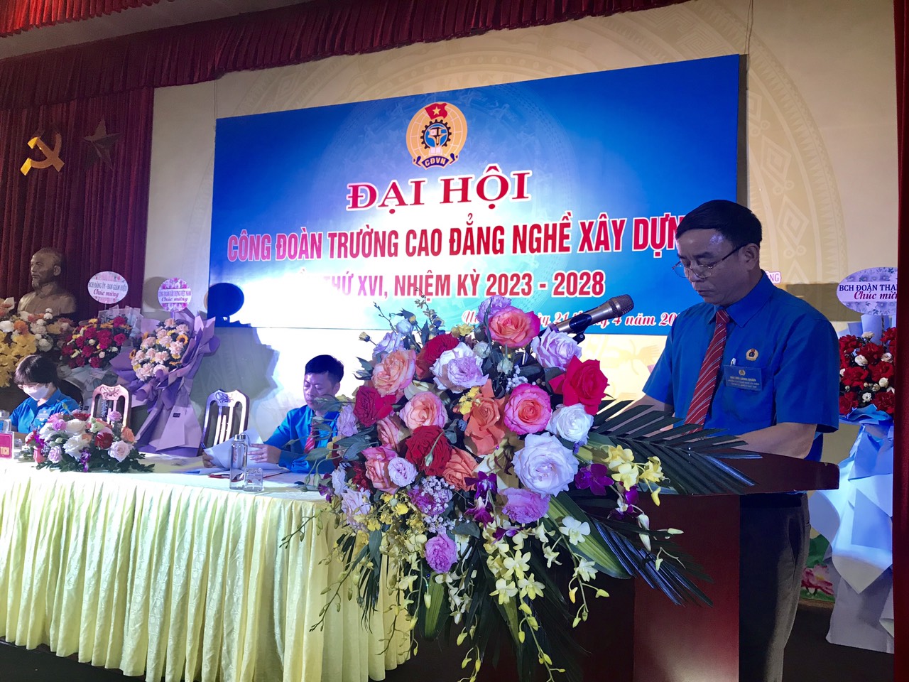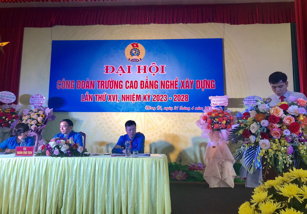 Thực hiện Điều lệ Công Đoàn Việt Nam, kế hoạch số 173/KH-CĐXD ngày 01/4/2023 của Công đoàn Xây dựng Việt Nam về việc tổ chức Đại hội Công đoàn cơ sở tiến tới Đại hội XIV Công đoàn Xây dựng Việt Nam và Đại hội XIII Công đoàn Việt Nam. Được sự đồng ý của Công đoàn Xây dựng Việt Nam, Đảng uỷ, Ban giám hiệu nhà trường, sáng ngày 21 tháng 4 năm 2023, Công đoàn Trường Cao đẳng nghề Xây dựng đã long trọng tổ chức Đại hội Công đoàn lần thứ XVI, nhiệm kỳ 2023 – 2028.