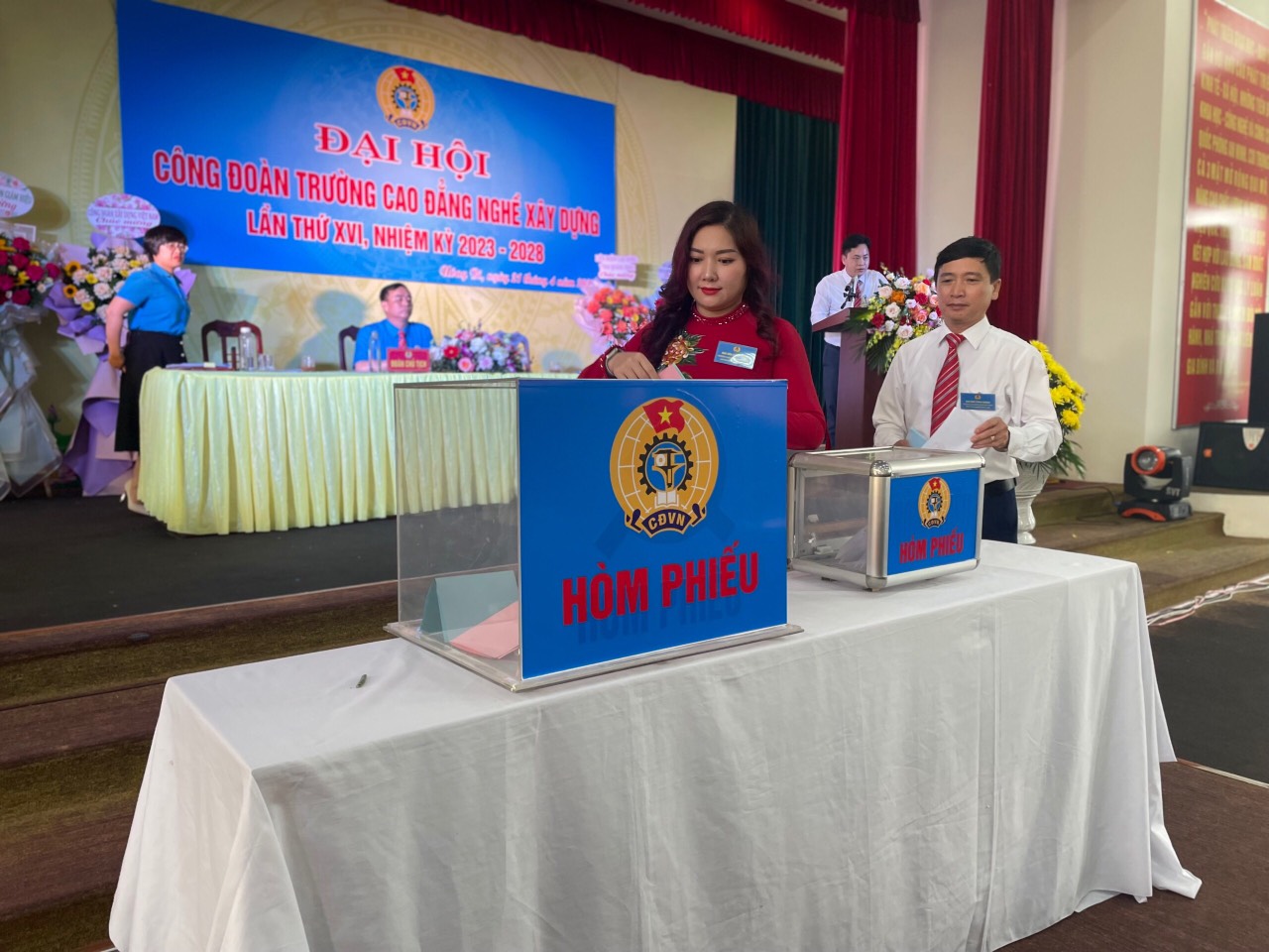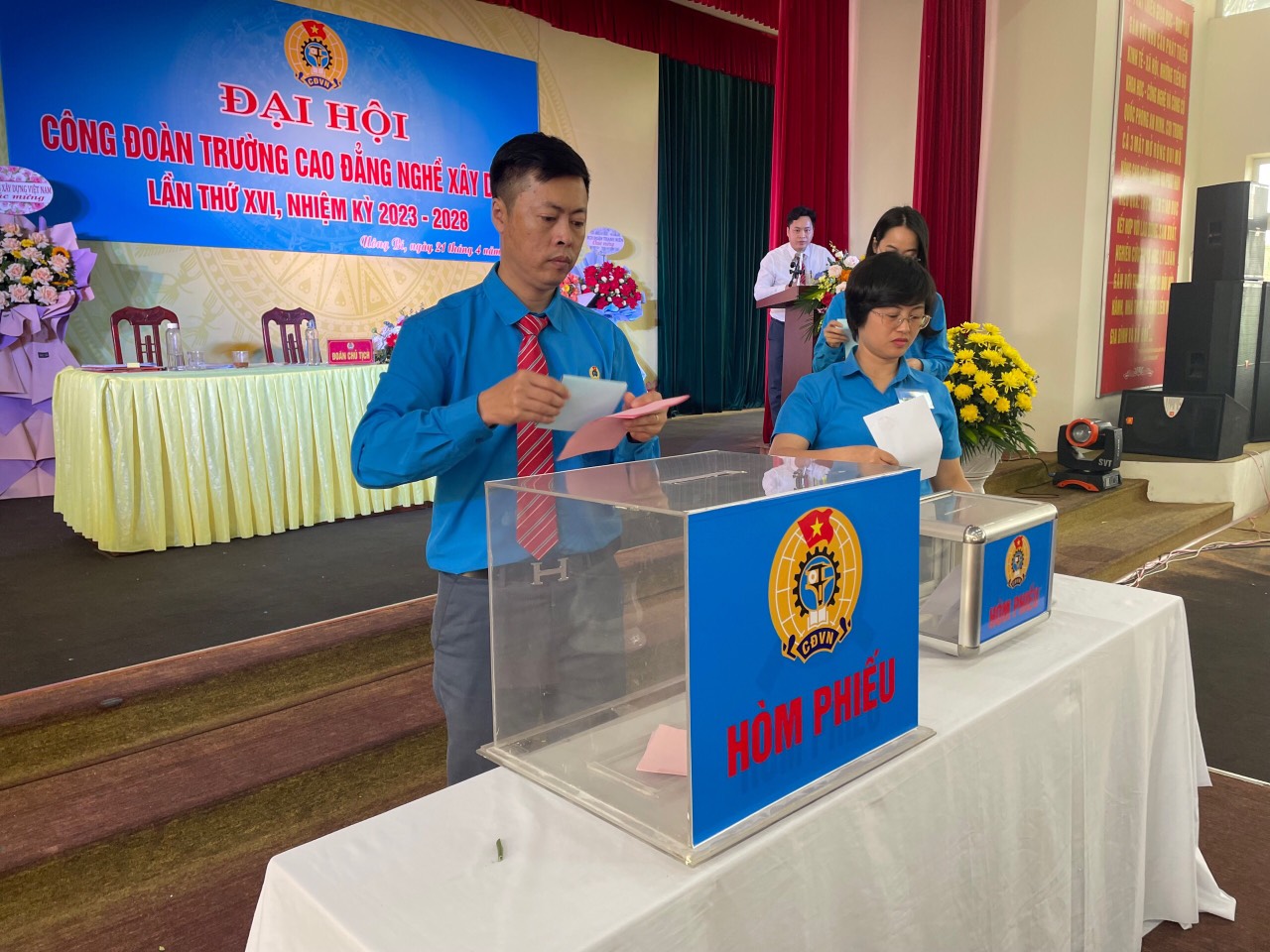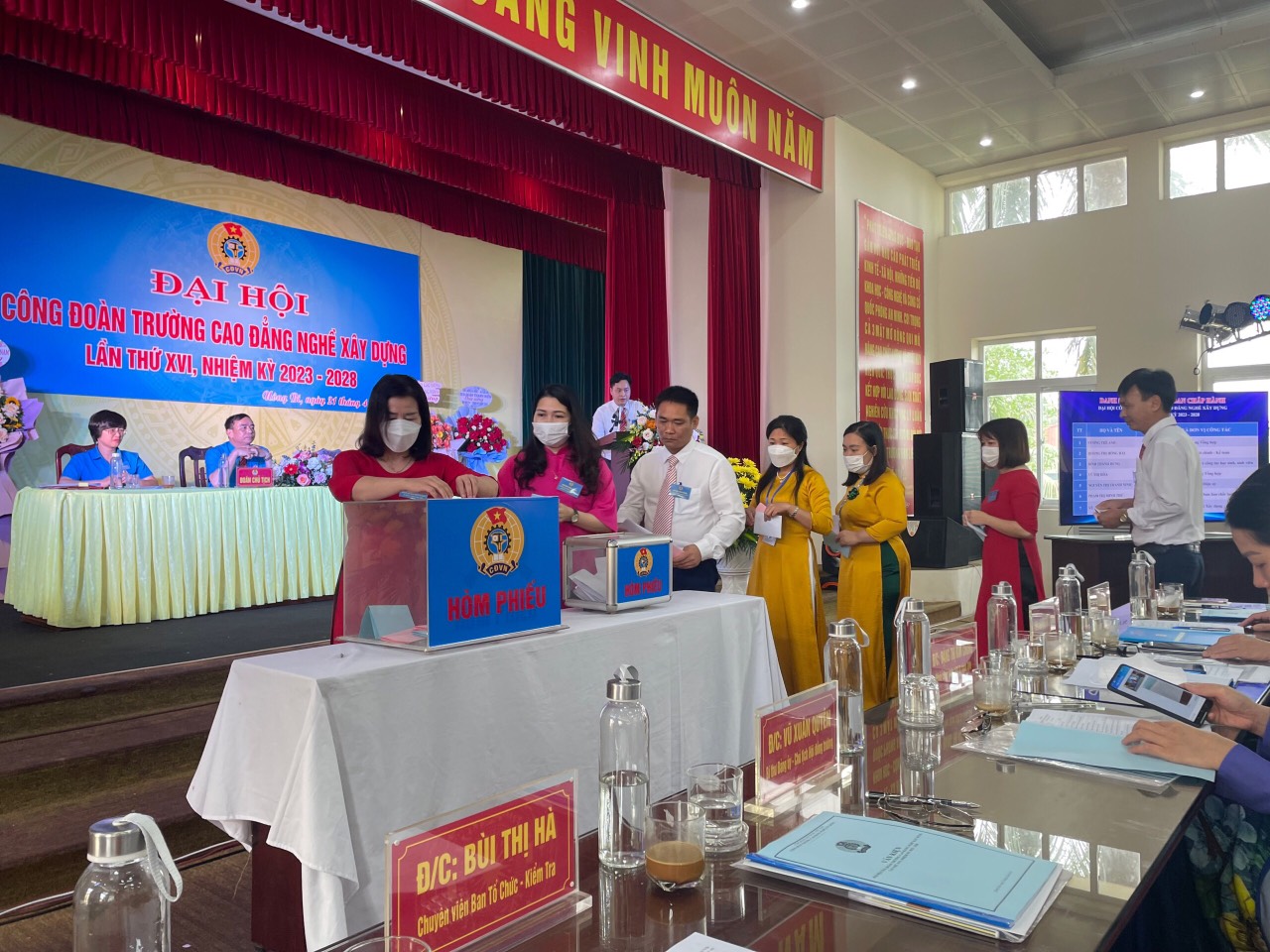 Với tinh thần Đổi mới – Dân chủ – Đoàn kết – Phát triển, sau thời gian làm việc khẩn trương, nghiêm túc, tích cực, Đại hội Công đoàn Trường Cao đẳng nghề Xây dựng đã bầu được 07 đồng chí vào Ban chấp hành Công đoàn lần thứ XVI, nhiệm kỳ 2023 – 2028 và bầu đại biểu đi dự Đại hội Công đoàn Xây dựng Việt Nam lần thứ XIV.