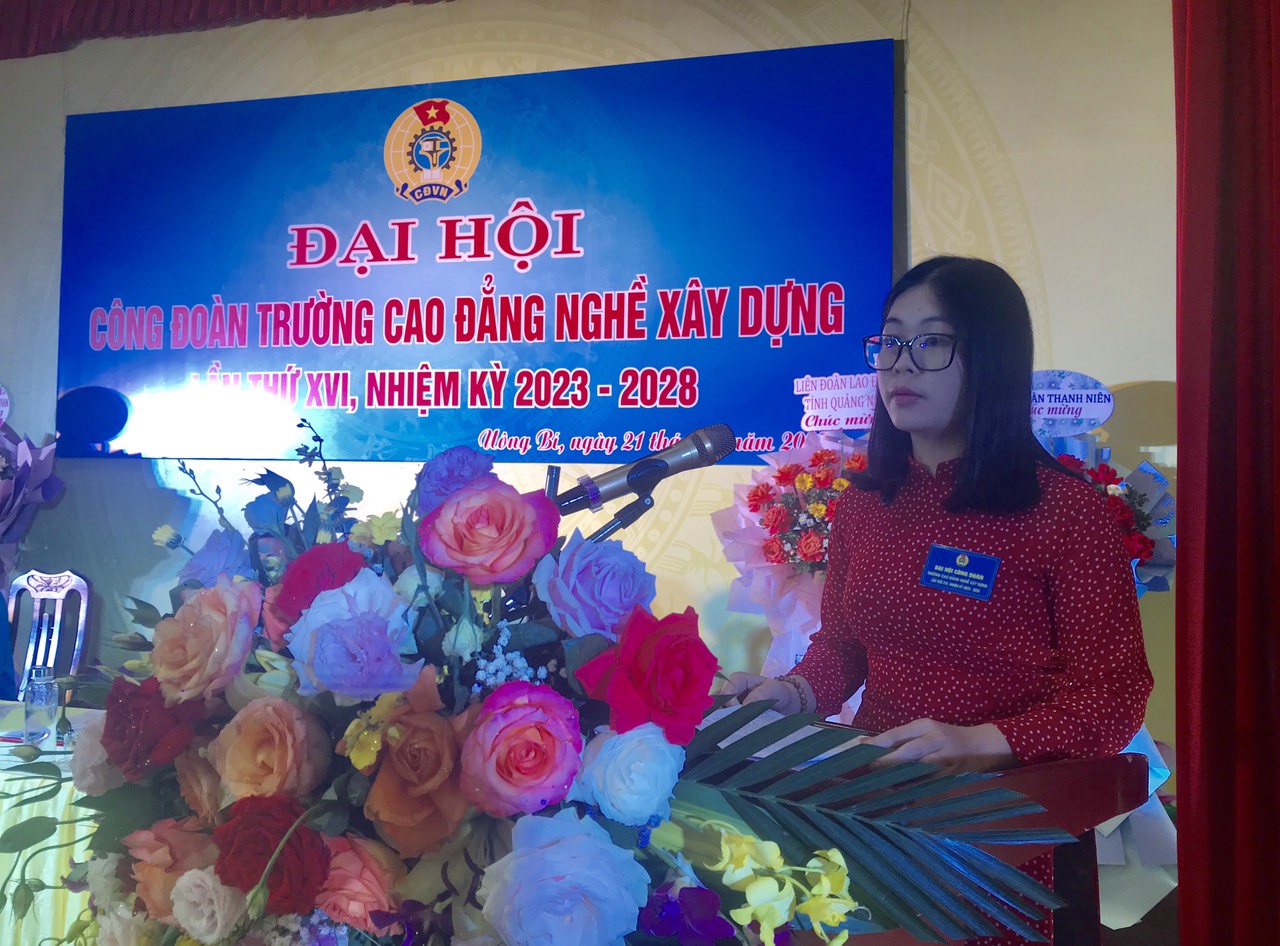 Cũng tại đại hội, đồng chí Đỗ Văn Quảng – Phó Chủ tịch Công đoàn Xây dựng Việt Nam thay mặt tổ chức công đoàn cấp trên đánh giá cao những kết quả mà công đoàn Trường Cao đẳng nghề Xây dựng đã đạt được trong nhiệm kỳ vừa qua, đồng thời đề nghị các đại biểu phát huy tinh thần dân chủ, đoàn kết, sáng suốt lựa chọn, bầu ra Ban chấp hành Công đoàn khoá mới có đủ phẩm chất và năng lực để đưa hoạt động công đoàn và phong trào viên chức, người lao động của Nhà trường ngày càng phát triển. Đồng chí Đỗ Văn Quảng đề nghị trong nhiệm kỳ tới, Ban chấp hành Trường cần tập trung triển khai hoạt động hướng vào chức năng cốt lõi của tổ chức công đoàn là đại diện, bảo vệ, chăm lo cho đoàn viên, người lao động, đồng hành, phối hợp chặt chẽ với Đảng uỷ, Ban giám hiệu trong thực hiện các nhiệm vụ của Nhà trường, chủ động đổi mới nội dung, hình thức tổ chức hoạt động công đoàn và các phong trào thi đua, đảm bảo có chiều sâu, thu hút đông đảo các đoàn viên, người lao động tham gia để phát huy sức mạnh tổng hợp, nâng cao hiệu quả hoạt động chung của Nhà trường.