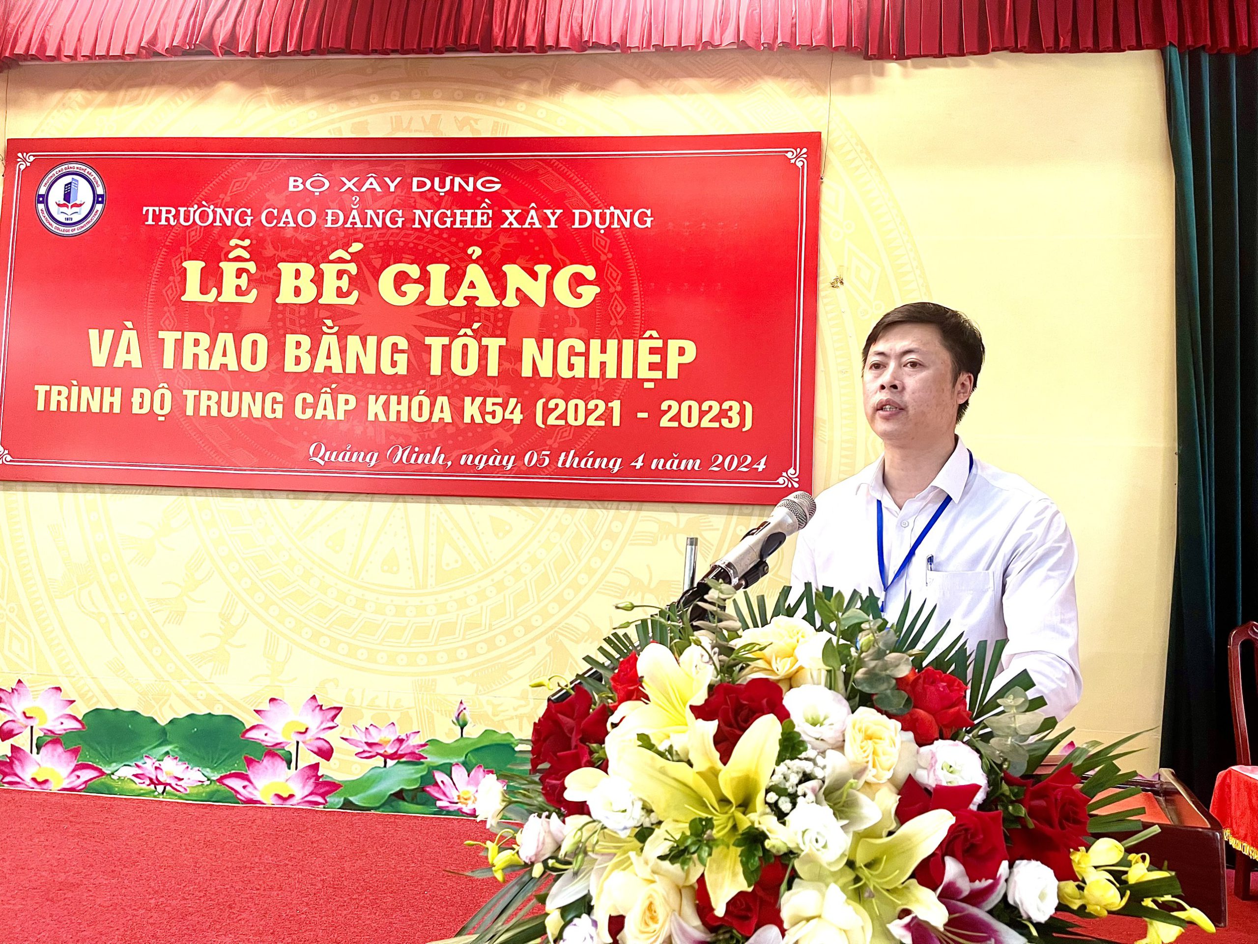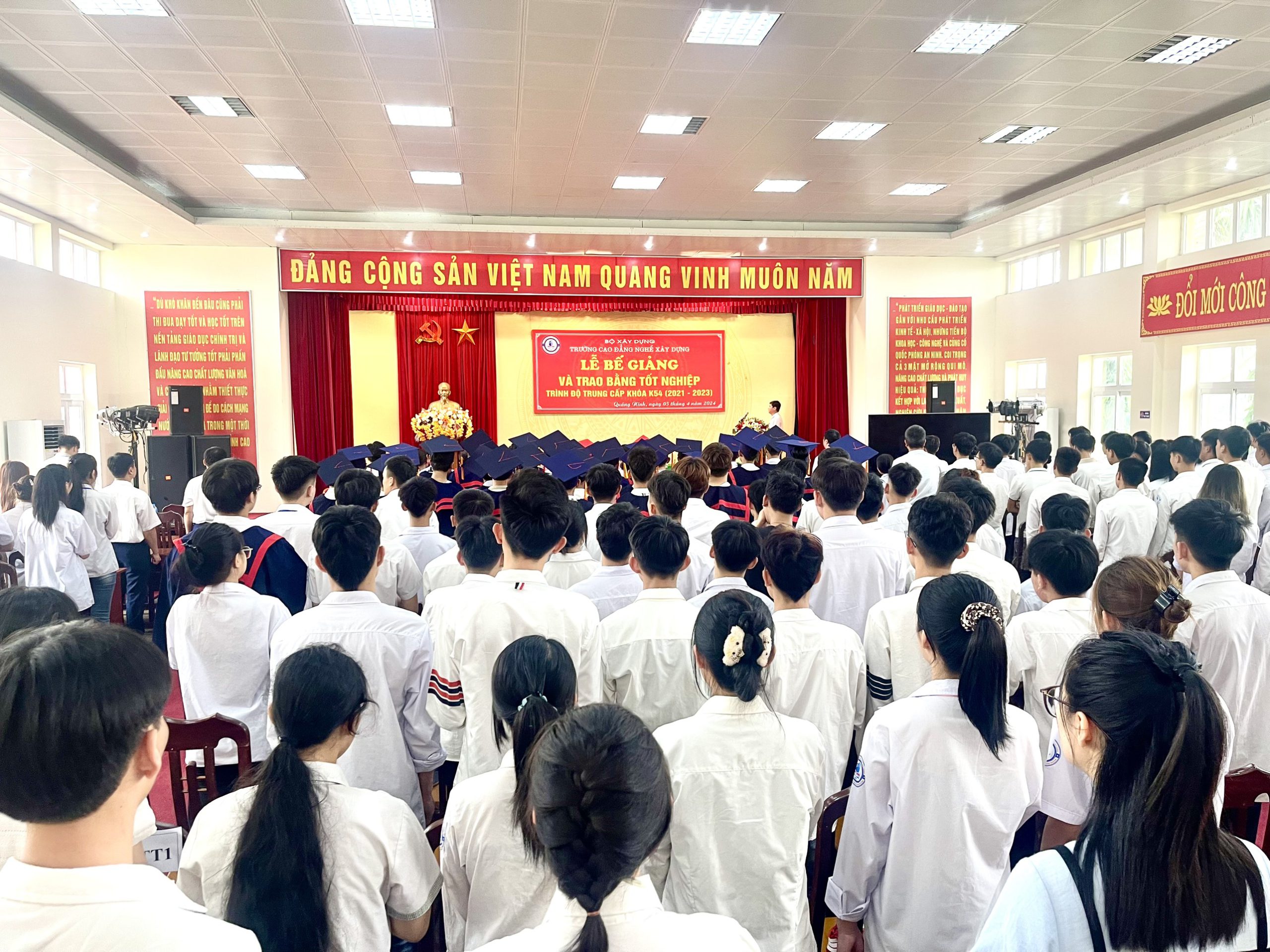 Thực hiện nhiệm vụ công tác đào tạo năm học 2023 – 2024. Ngày 05 tháng 4 năm 2024, Trường Cao đẳng nghề Xây dựng long trọng tổ chức Lễ Bế giảng và trao bằng tốt nghiệp cho các em học sinh khoá 54 (2021 – 2023) trình độ Trung cấp.