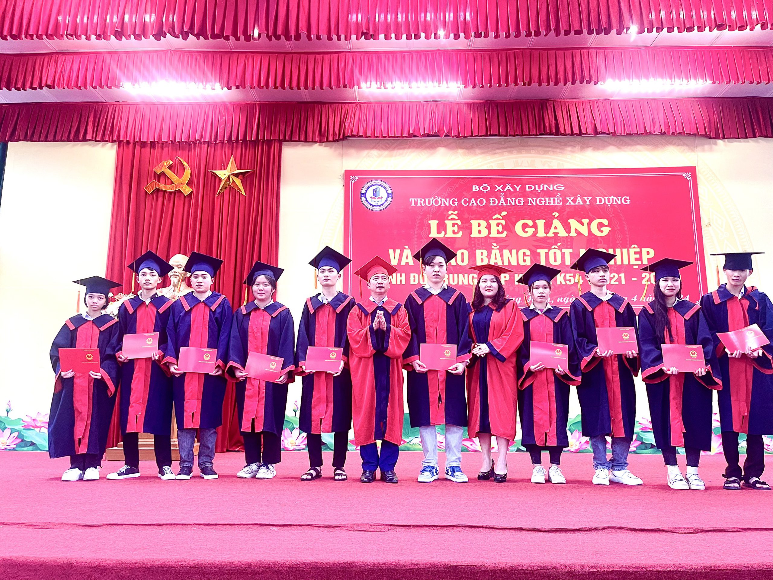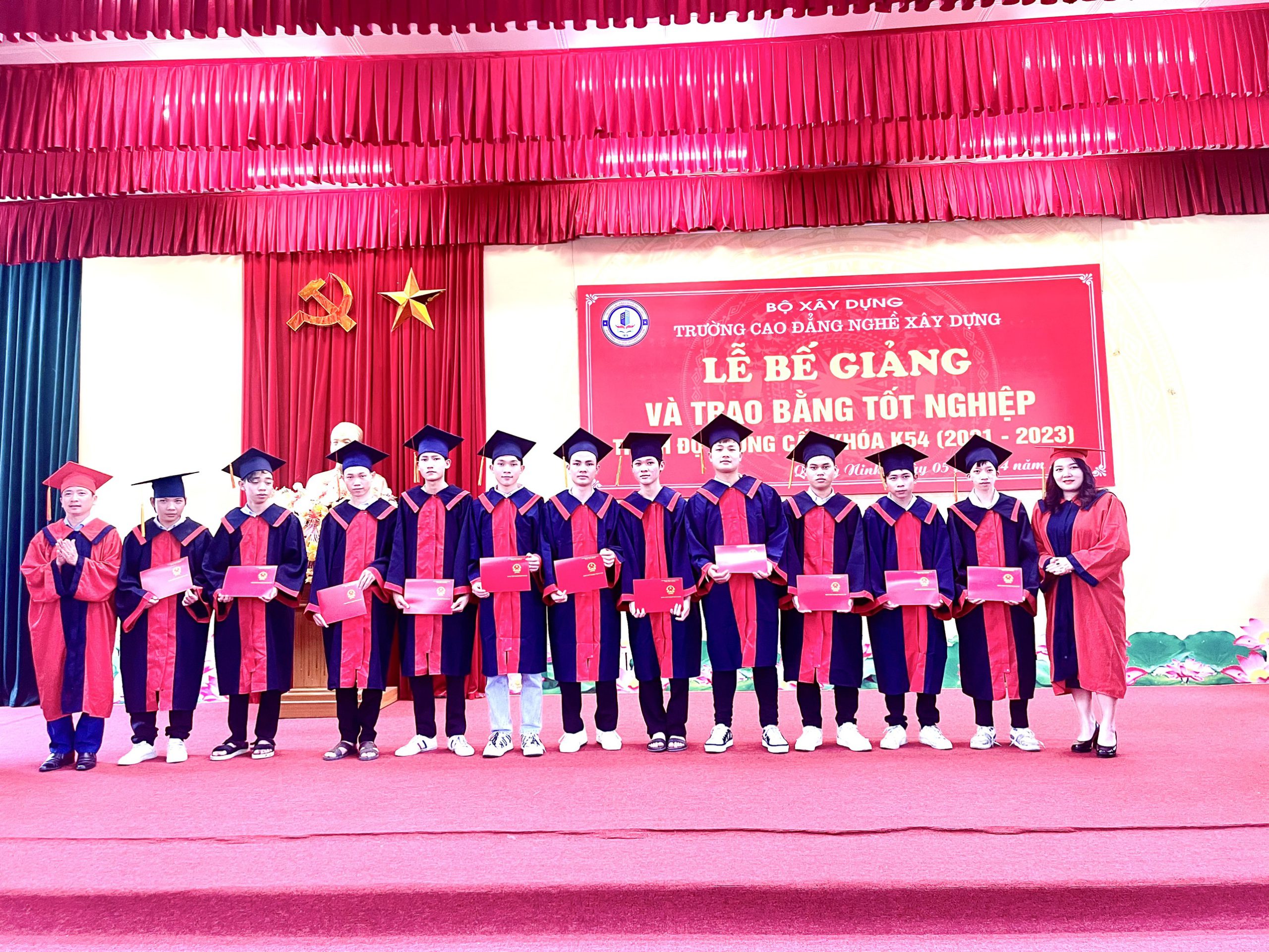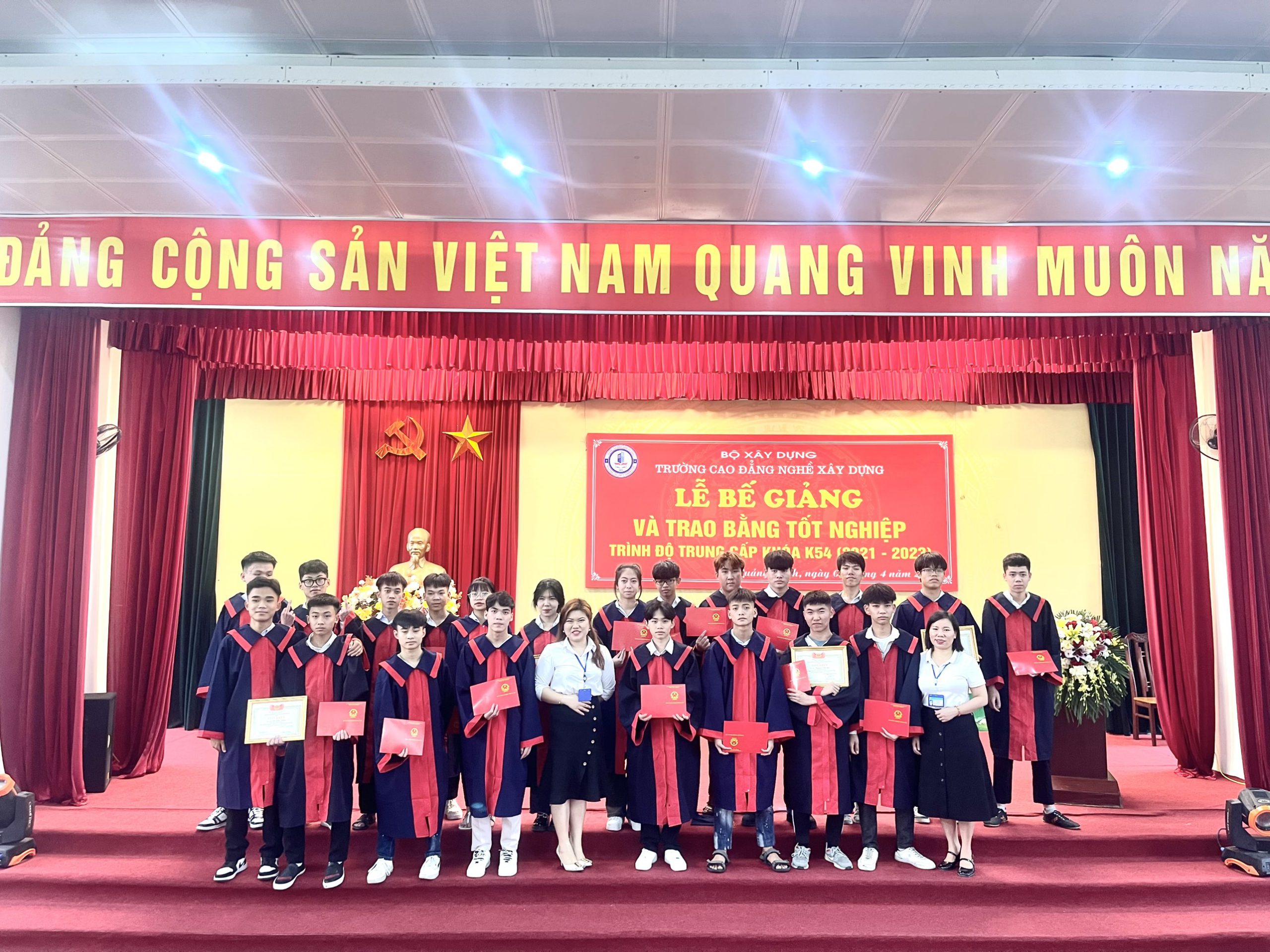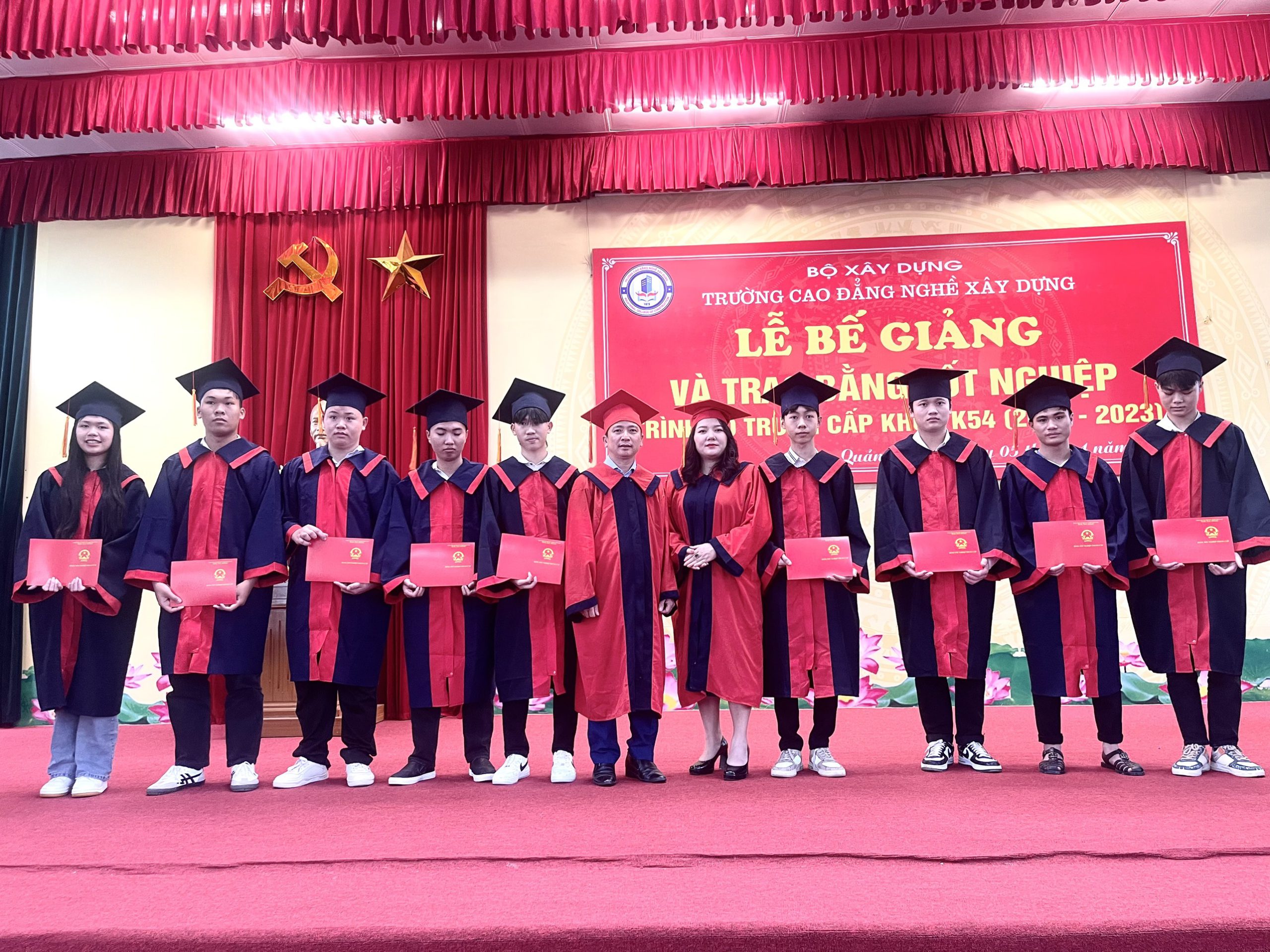 Đặc biệt, tham dự Lễ bế giảng và trao bằng tốt nghiệp có đông đủ học sinh trình độ Trung cấp các ngành như: Điện công nghiệp; Cấp thoát nước; Công nghệ thông tin; Kế toán doanh nghiệp; Kỹ thuật xây dựng; Điện – nước; Hàn; Kỹ thuật chế biến món ăn; May thời trang khoá 54 (2021 – 2023) được công nhận tốt nghiệp và nhận bằng tốt nghiệp trình độ Trung cấp của Trường Cao đẳng nghề Xây dựng.