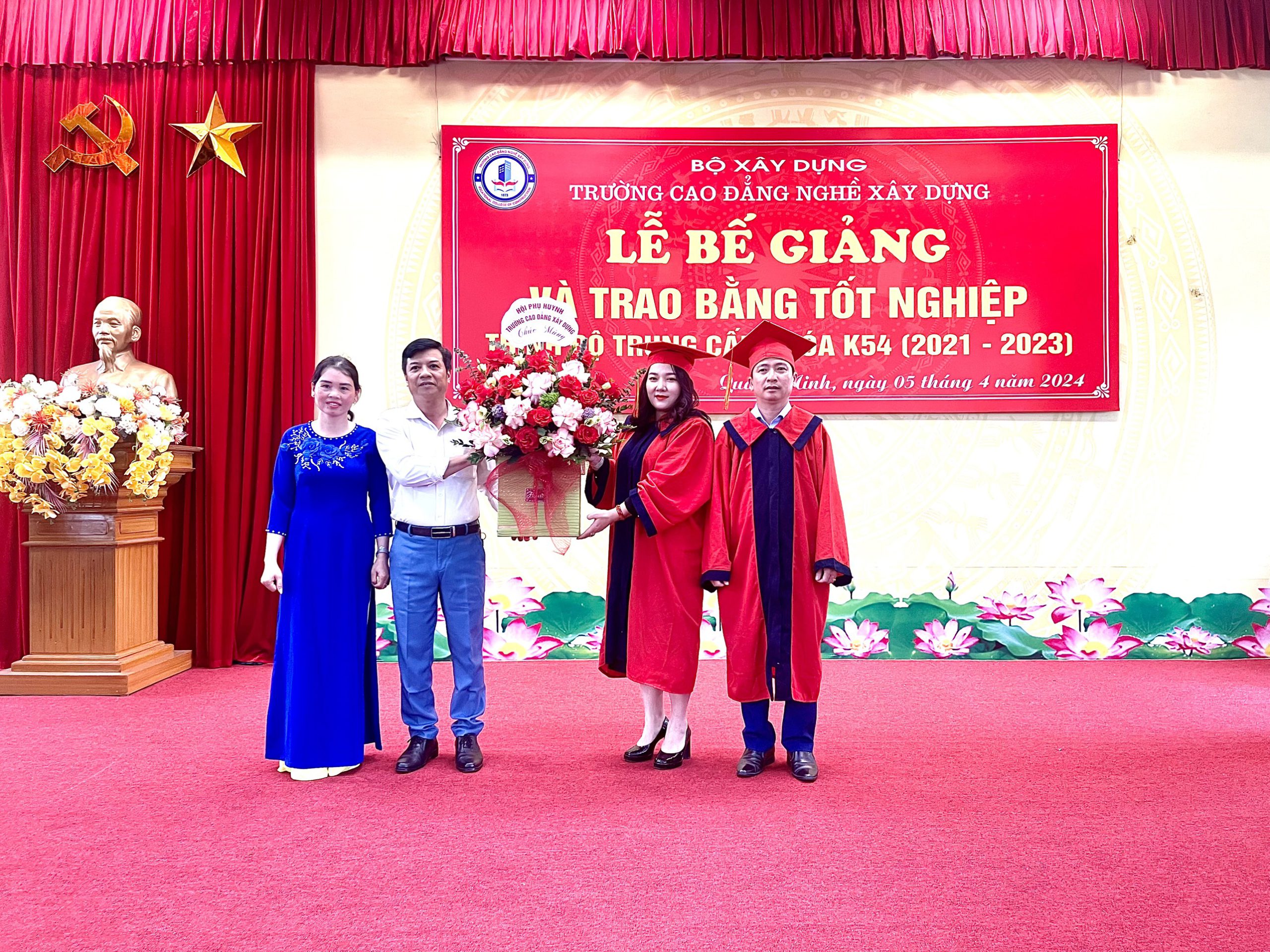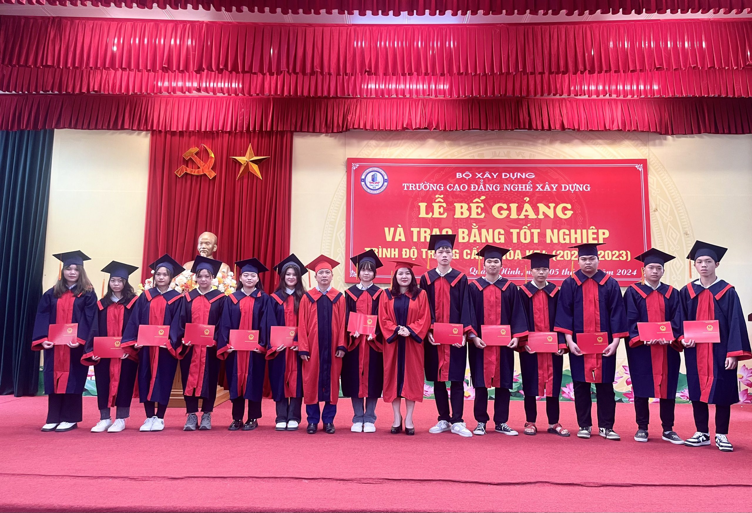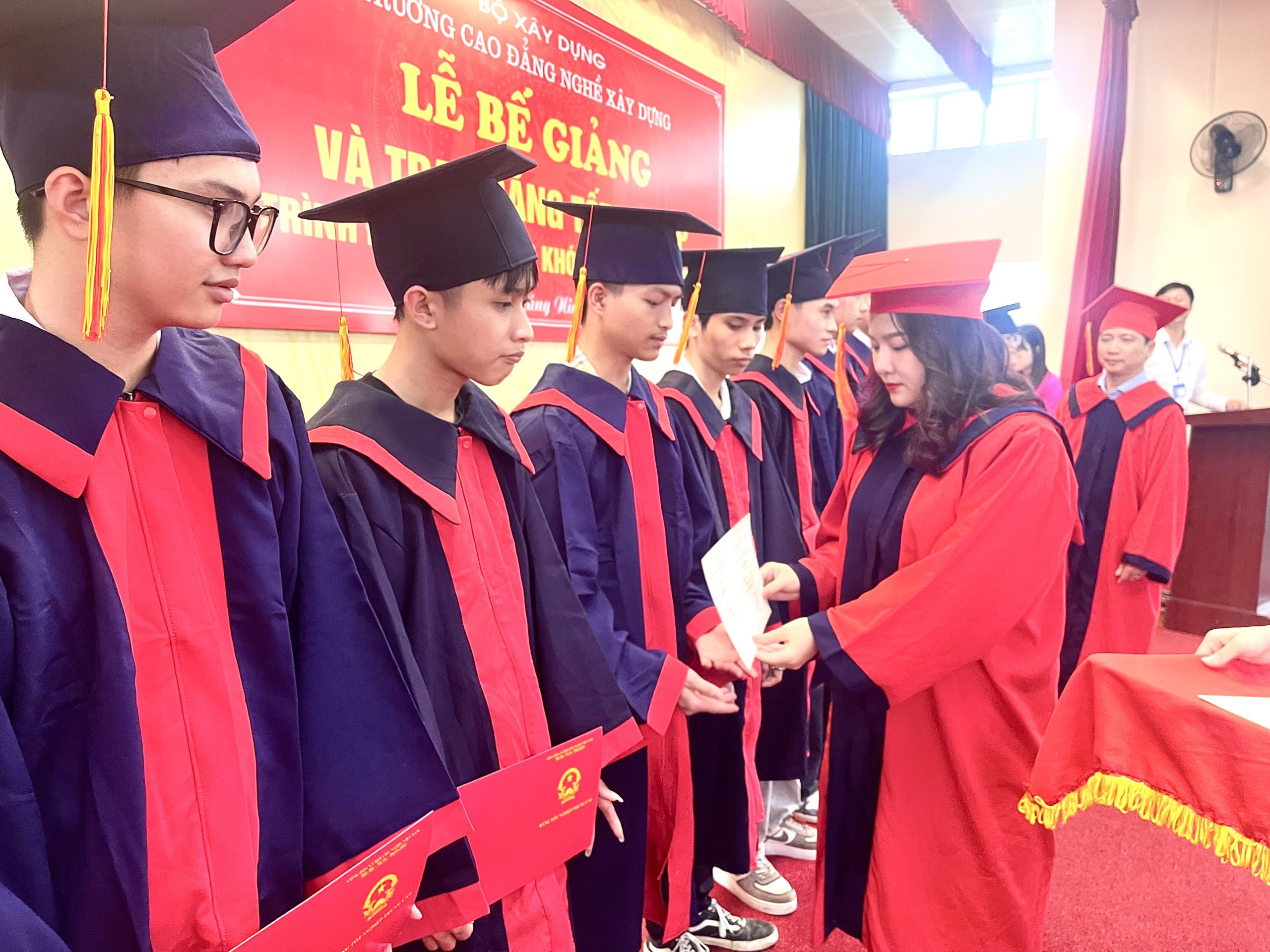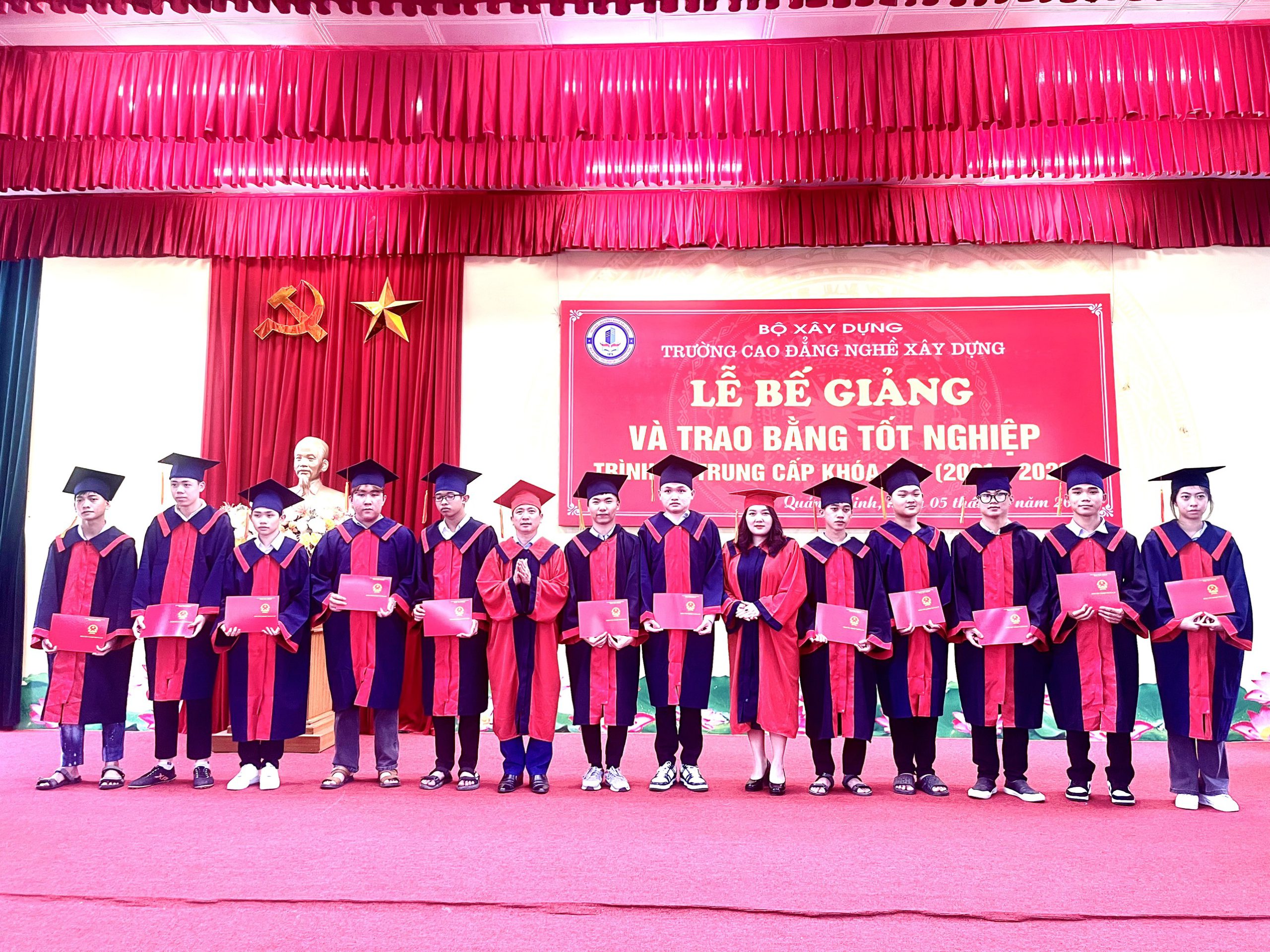 Đặc biệt, tham dự Lễ bế giảng và trao bằng tốt nghiệp có đông đủ học sinh trình độ Trung cấp các ngành như: Điện công nghiệp; Cấp thoát nước; Công nghệ thông tin; Kế toán doanh nghiệp; Kỹ thuật xây dựng; Điện – nước; Hàn; Kỹ thuật chế biến món ăn; May thời trang khoá 54 (2021 – 2023) được công nhận tốt nghiệp và nhận bằng tốt nghiệp trình độ Trung cấp của Trường Cao đẳng nghề Xây dựng.