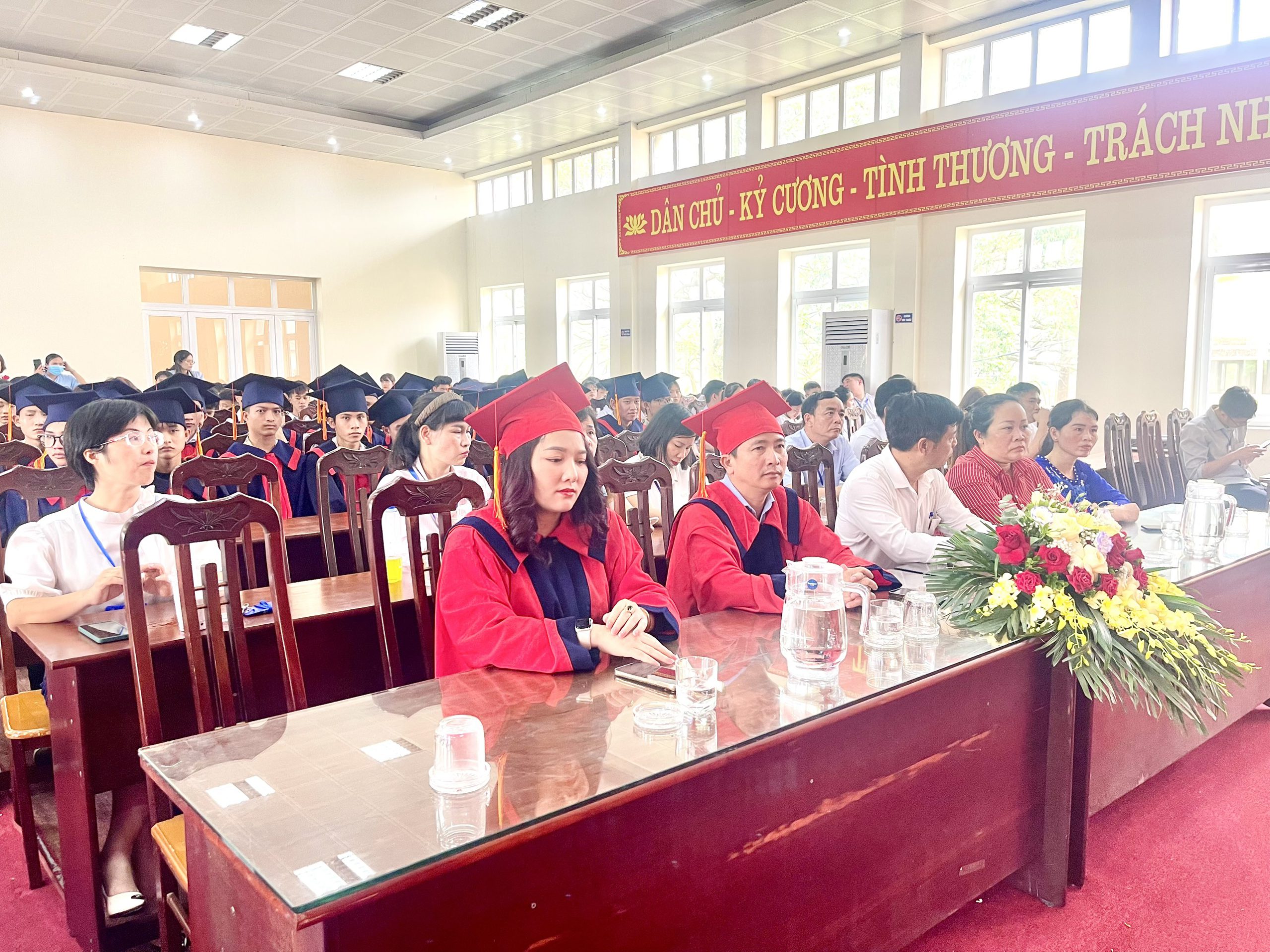 Phát biểu tại buổi Lễ, Th.s Vũ Xuân Quyên – Bí thư Đảng uỷ, Phó Hiệu trưởng Nhà trường đã gửi lời chúc mừng đến các em học sinh đã hoàn thành khoá học và được nhận bằng tốt nghiệp ngày hôm nay.