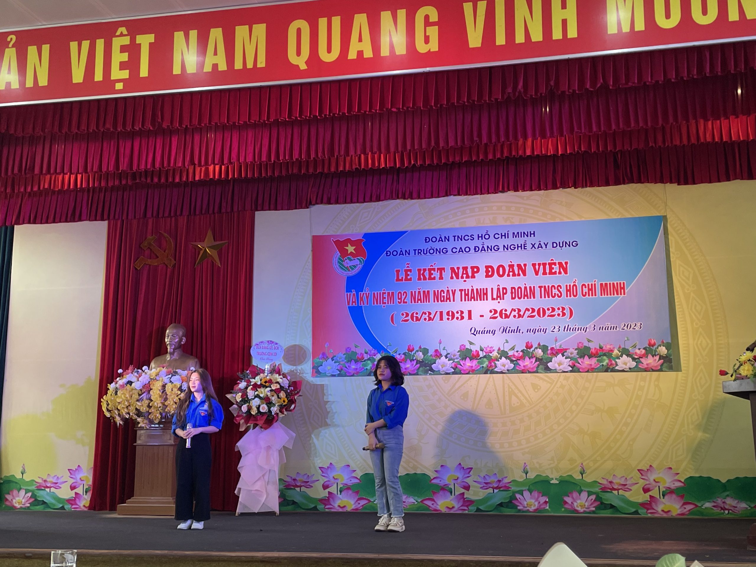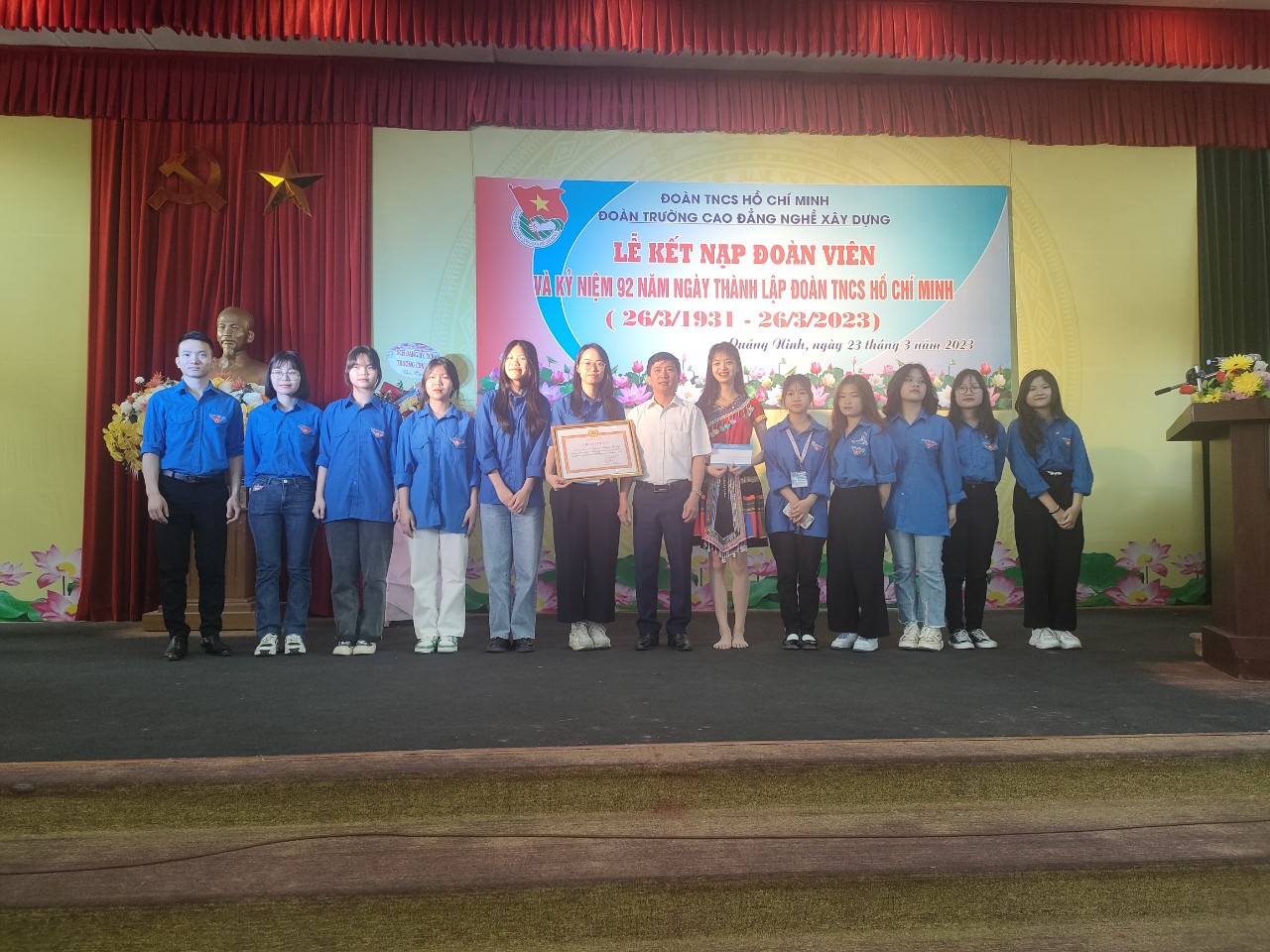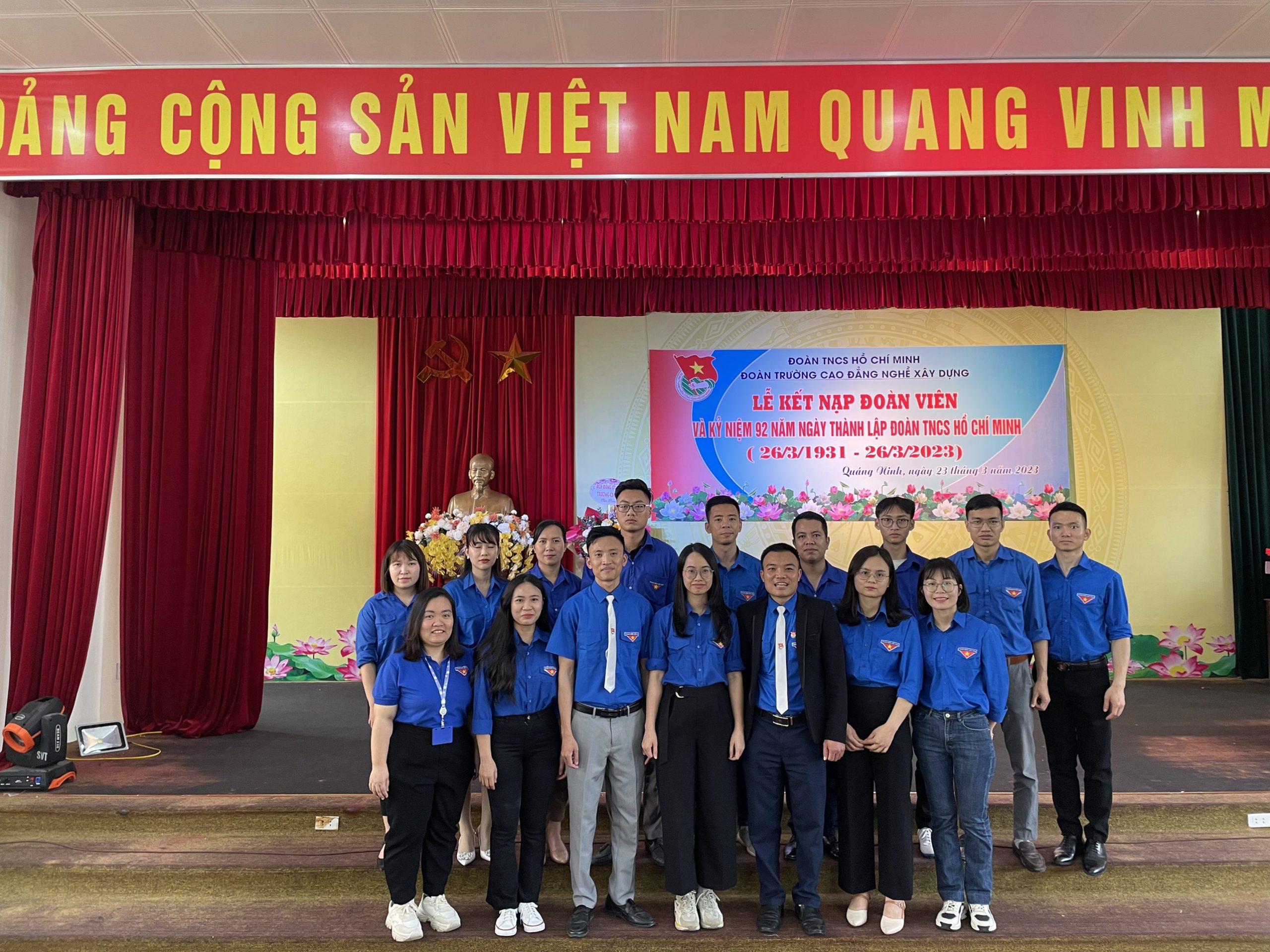 Truyền thống 92 năm vẻ vang của Đoàn TNCS Hồ Chí Minh là dịp để khơi dậy niềm tự hào và quyết tâm cống hiến trong thanh niên Trường Cao đẳng nghề Xây dựng. Được sự thống nhất của Đảng uỷ, BGH nhà trường, Ngày 23/3/2023 Đoàn Thanh niên tổ chức lễ kết nạp Đoàn viên và kỷ niệm 92 năm ngày thành lập Đoàn thanh niên cộng sản Hồ Chí Minh (26/3/1931-26/3/2023).