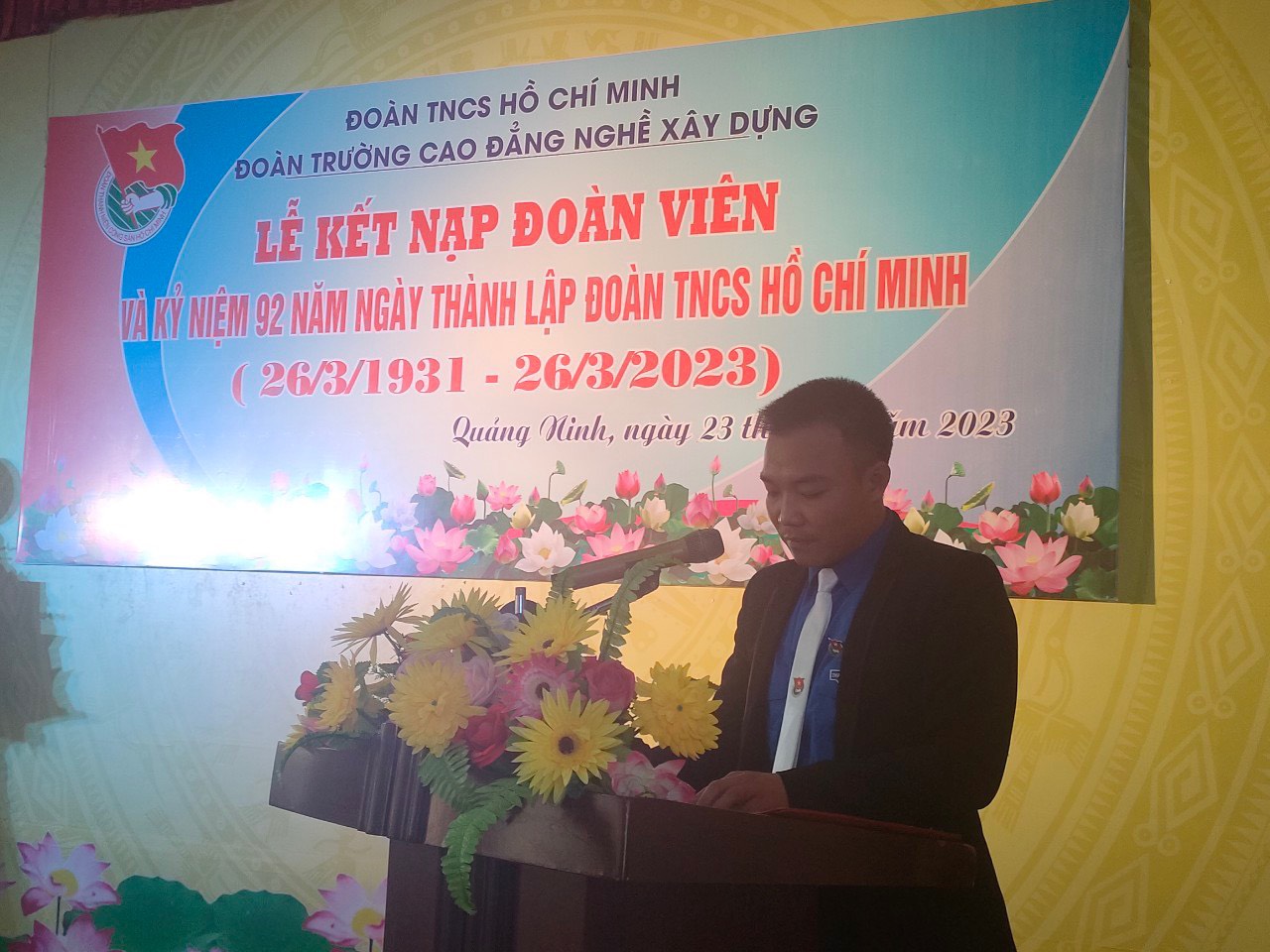 Đồng chí: Bùi Văn Nam – Bí thư Đoàn Thanh niên trường Cao đẳng nghề Xây dựng ôn lại truyền thống 92 năm của Đoàn Thanh niên