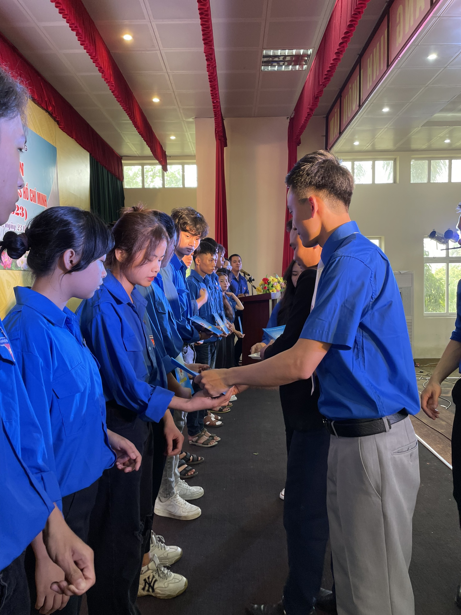 Phần sau của buổi lễ là khen thưởng cho Đoàn tham gia dự thi Hội thi “Học tập và làm theo tư tưởng, đạo đức, phong cách Hồ Chí Minh khơi dậy khát vọng xây dựng tỉnh Quảng Ninh trở thành tỉnh kiểu mẫu, ngày càng giầu đẹp, văn minh, hiện đại” diễn ra tại Thành ủy thành phố Uông Bí ngày 11/3/2023 vừa qua cùng các cá nhân, tập thể đã có thành tích trong công tác Đoàn trong năm học 2021-2022.