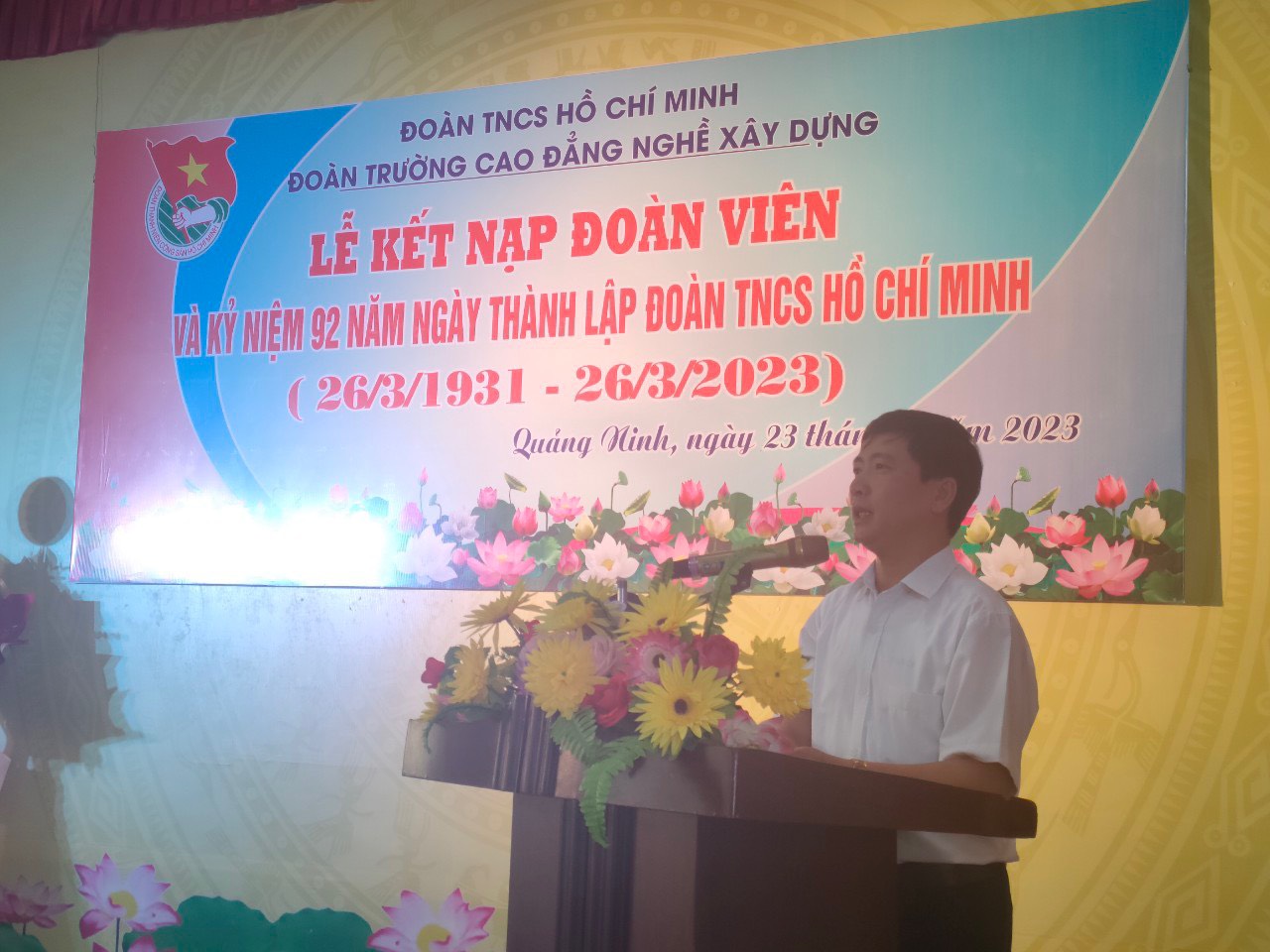 Thay mặt BGH nhà trường, Thầy Vũ Xuân Quyên, Bí thư Đảng ủy, Phó Hiệu trưởng nhà trường chúc mừng và nhắn nhủ tới các tân đoàn viên Đoàn trường Cao đẳng nghề Xây dựng rằng việc phấn đấu để trở thành đoàn viên Đoàn TNCS Hồ Chí Minh là niềm vinh dự, tự hào đối với các em học sinh khi còn ngồi trên ghế nhà trường. Và bên cạnh niềm hạnh phúc, niềm vinh dự, tự hào thì đó cũng là trách nhiệm cao cả song vô cùng lớn lao.