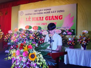Tại buổi lễ Khai giảng, thay mặt cho học sinh, sinh viên toàn trường, Em Hoàng Minh Nhật lớp nghề Điện công nghiệp đã nói lên cảm nghĩ của mình về mái trường Cao đẳng nghề Xây dựng nhân ngày khai giảng năm học và bày tỏ quyết tâm học tập tốt, ra sức tu dưỡng, rèn luyện đạo đức, tác phong nghề nghiệp để góp phần thực hiện thắng lợi nhiệm vụ của Nhà trường trong năm học 2021 – 2022.