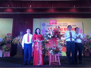 Đồng chí Vũ Quang Trực – Phó giám đốc Sở lao động Thương binh và Xã hội tặng hoa chúc mừng Nhà trường