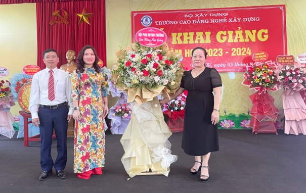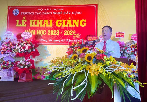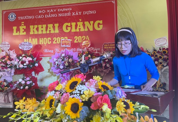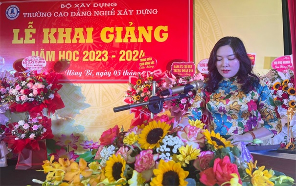 Thay mặt cho Đảng uỷ và Ban giám hiệu nhà trường, Cô Nguyễn Thị Hoài bày tỏ lòng biết ơn sâu sắc đến sự quan tâm lãnh đạo của Bộ Xây dựng; HĐND, UBND thành phố Uông Bí; các Sở, Ban, ngành của Tỉnh Quảng Ninh đã luôn chỉ đạo và tạo điều kiện cho Nhà trường hoàn thành tốt nhiệm vụ giáo dục trong thời gian qua. Cảm ơn các đơn vị bạn đã luôn quan tâm, ủng hộ, giúp đỡ Nhà trường. Cảm ơn các thầy, cô giáo, cán bộ công nhân viên và học sinh trong toàn Trường đã nỗ lực không ngừng xây dựng Trường Cao đẳng nghề Xây dựng ngày càng phát triển. Đặc biệt, Cô Nguyễn Thị Hoài đã gửi lời chúc mừng tới toàn thể cán bộ, giáo viên, học sinh sinh viên nhân ngày Khai trường, đồng thời mong muốn học sinh, sinh viên toàn trường khắc phục mọi khó khăn, tiếp tục nỗ lực học tập, hoàn thiện kỹ năng tay nghề, góp phần cùng nhà trường thực hiện thắng lợi nhiệm vụ năm học 2023 – 2024.