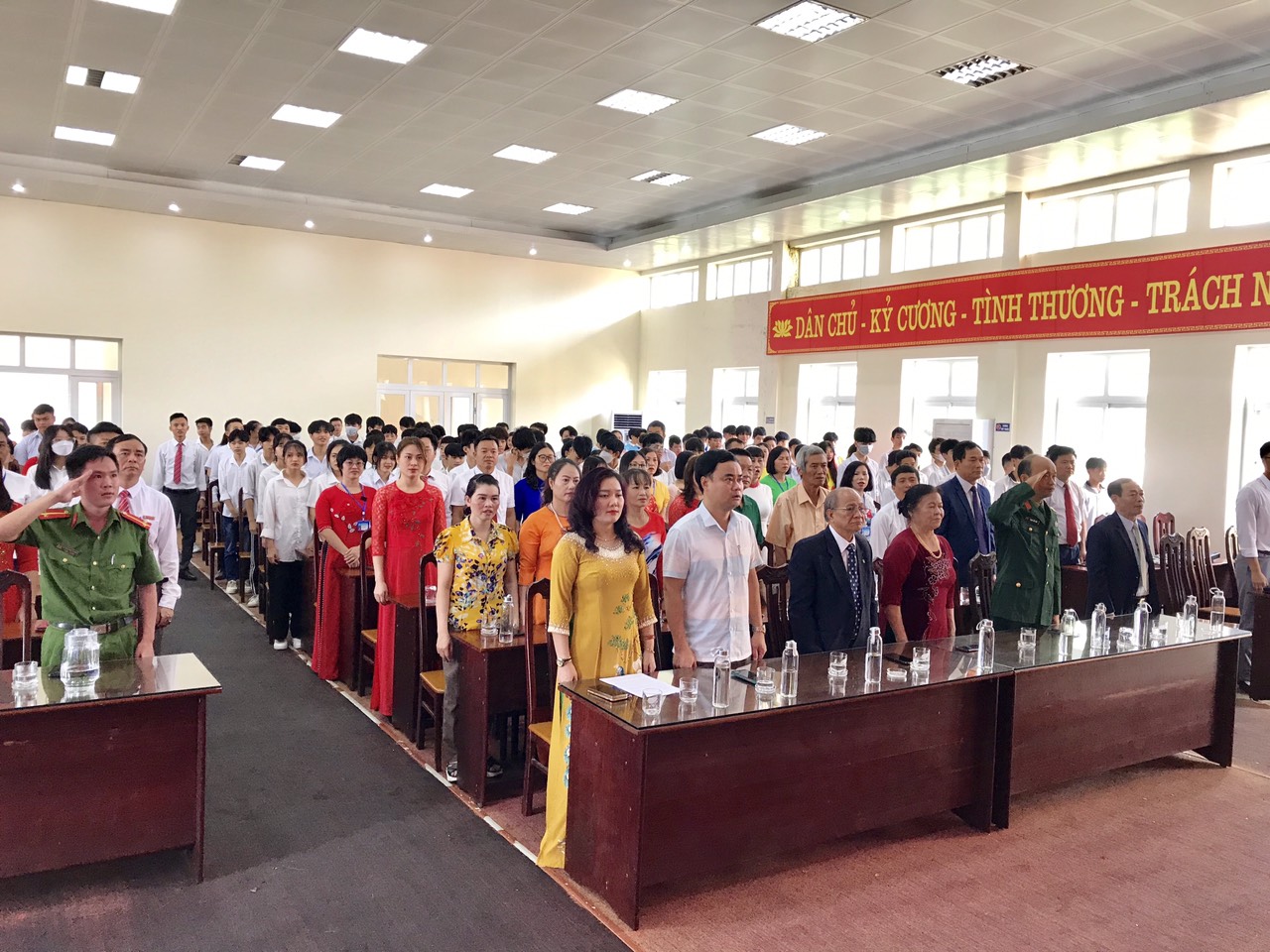 Đến dự buổi lễ kỷ niệm, về phía Nhà trường: Cô Nguyễn Thị Hoài – Hiệu trưởng Nhà trường; Thầy Vũ Xuân Quyên Phó Hiệu trưởng và toàn thể giáo viên, cán bộ công nhân viên trong toàn trường và các em học sinh, sinh viên tiêu biểu đang học tập tại trường về dự Lễ kỷ niệm.