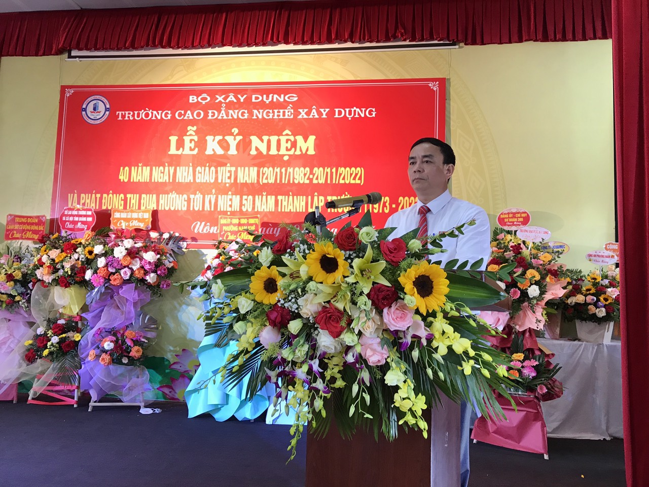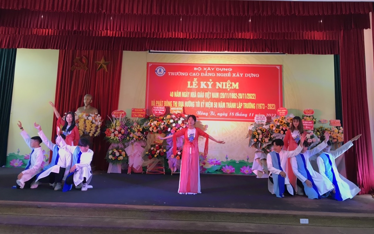 Sáng ngày 18/11/2022 Trường Cao đẳng nghề Xây dựng long trọng tổ chức Lễ kỷ niệm 40 năm ngày Nhà giáo Việt Nam (20/11/1982 – 20/11/2022) và phát động thi đua hướng tới kỷ niệm 50 năm thành lập trường (1973 – 2023).