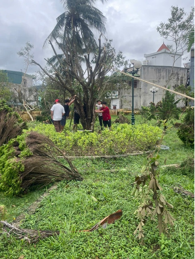 Sau đây là một số hình ảnh Ban giám hiệu cùng các Thầy, cô giáo, nhân viên Nhà trường chung tay khắc phục hậu quả sau cơn bão số 3.