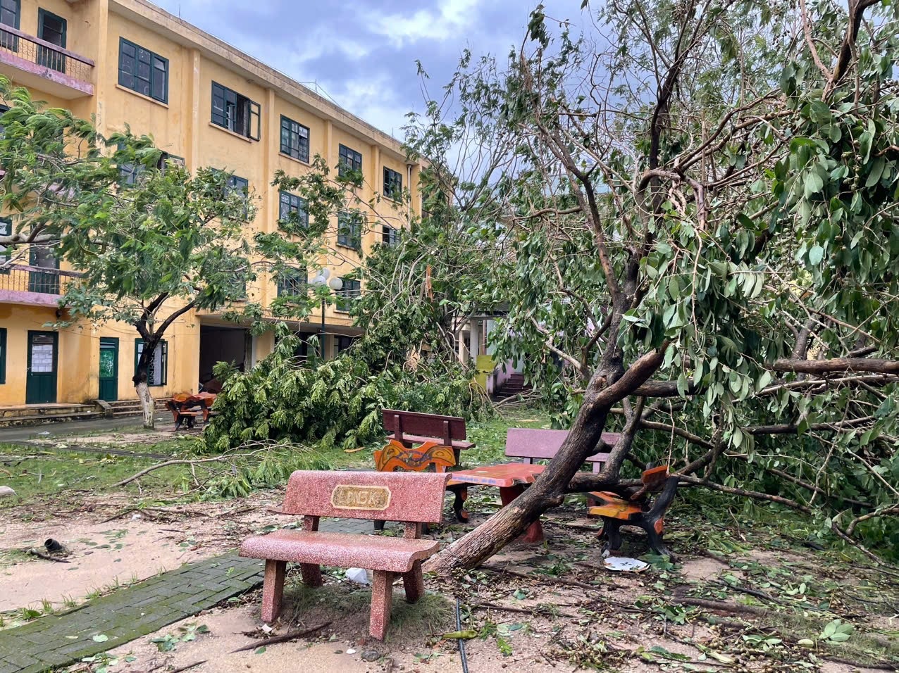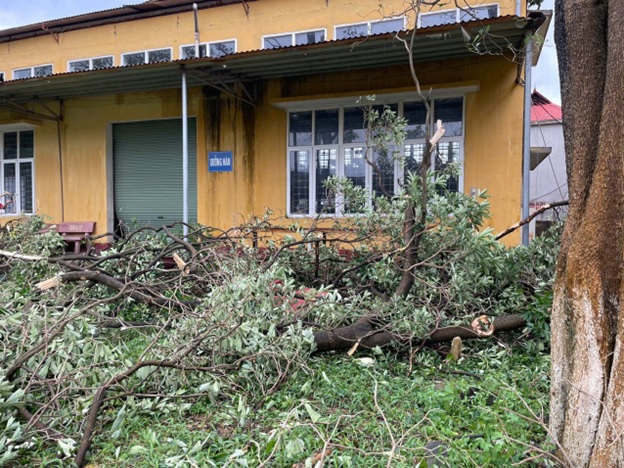 Vào sáng ngày 8/9/2024 ngay sau khi ngớt mưa gió, Ban chỉ đạo phòng chống lụt bão cùng với Ban giám hiệu Nhà trường đi kiểm tra và thống kê thiệt hại đồng thời huy động 100% cán bộ giáo viên, viên chức, lực lượng đoàn viên, thanh niên và các em học sinh đến trường khẩn trương khắc phục hậu quả sau cơn bão số 3. Sau 3 ngày liên tục khắc phục hậu quả cơ bản các điều kiện đã đảm bảo cho các em học sinh quay trở lại học tập.