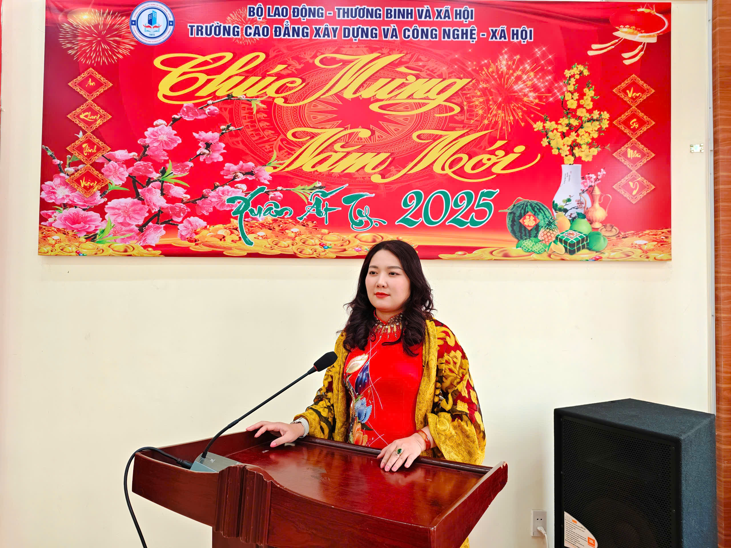 Phát biểu trong buổi gặp mặt, TS. Nguyễn Thị Hoài – Hiệu trưởng Nhà trường đã biểu dương những kết quả mà Nhà trường, các đơn vị, các Thầy, Cô giáo đã đạt được trong năm 2024, đồng thời cũng nêu ra những nhiệm vụ chủ yếu trong thời gian tới. Trong niềm vui xuân mới, TS. Nguyễn Thị Hoài cũng đã gửi lời chúc mừng năm mới, lời chúc sức khỏe, hạnh phúc tới toàn thể cán bộ, nhà giáo, người lao động và học sinh, sinh viên Nhà trường với hy vọng một năm mới tập thể Trường Cao đẳng Xây dựng và Công nghệ – xã hội đoàn kết, vượt qua mọi khó khăn thách thức trong thời gian tới đưa Nhà trường phát triển bền vững, bước lên một tầm cao mới.