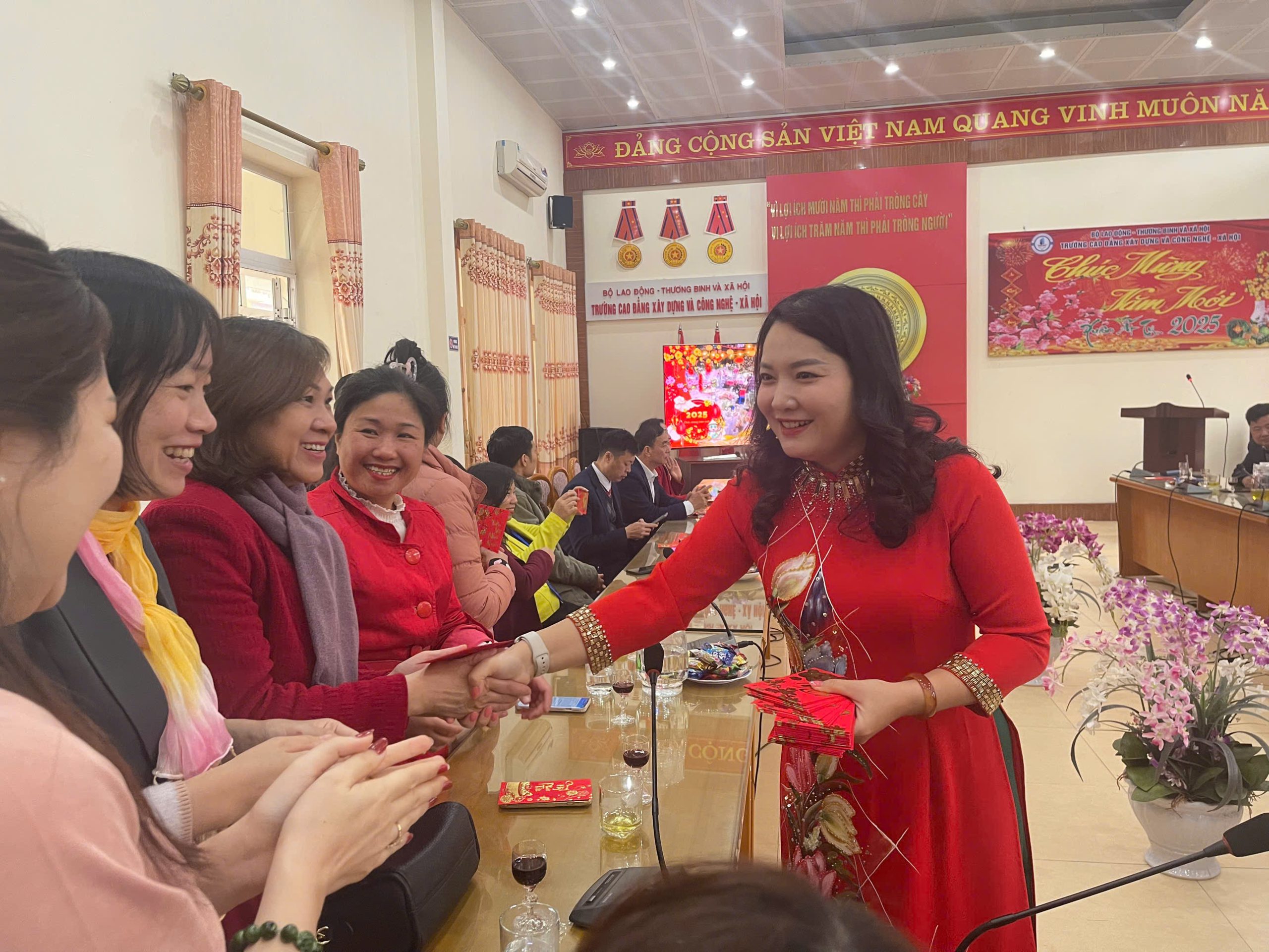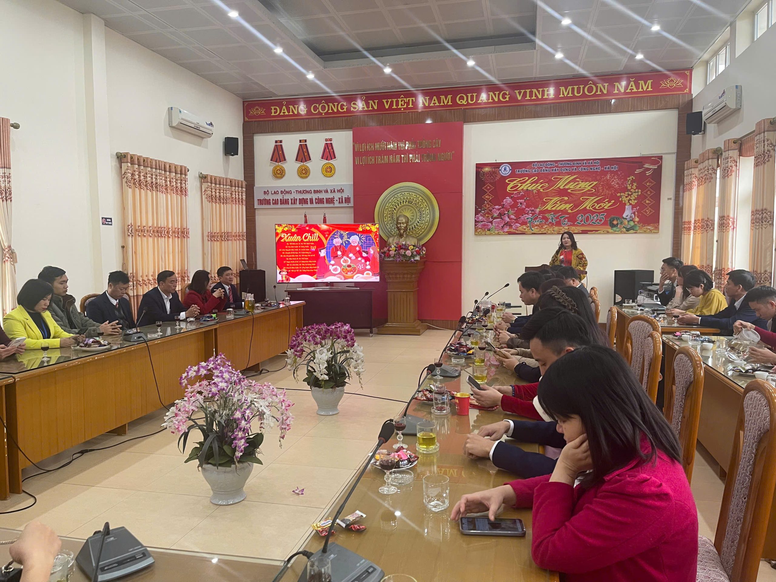 Trong không khí tưng bừng, phấn khởi mừng Đảng, mừng Xuân mới, thực hiện Kế hoạch số 135/KH-CĐXDCNXH ngày 21 tháng 01 năm 2025 của Trường Cao đẳng Xây dựng và Công nghệ – Xã hội về việc “Tổ chức gặp mặt và trồng cây đầu xuân năm 2025”, sáng ngày 05/2/2025, Trường Cao đẳng Xây dựng và Công nghệ – Xã hội long trọng tổ chức gặp mặt đầu xuân Ất Tỵ năm 2025 và thực hiện tổ chức “Tết trồng cây đời đời nhớ ơn Bác Hồ”.