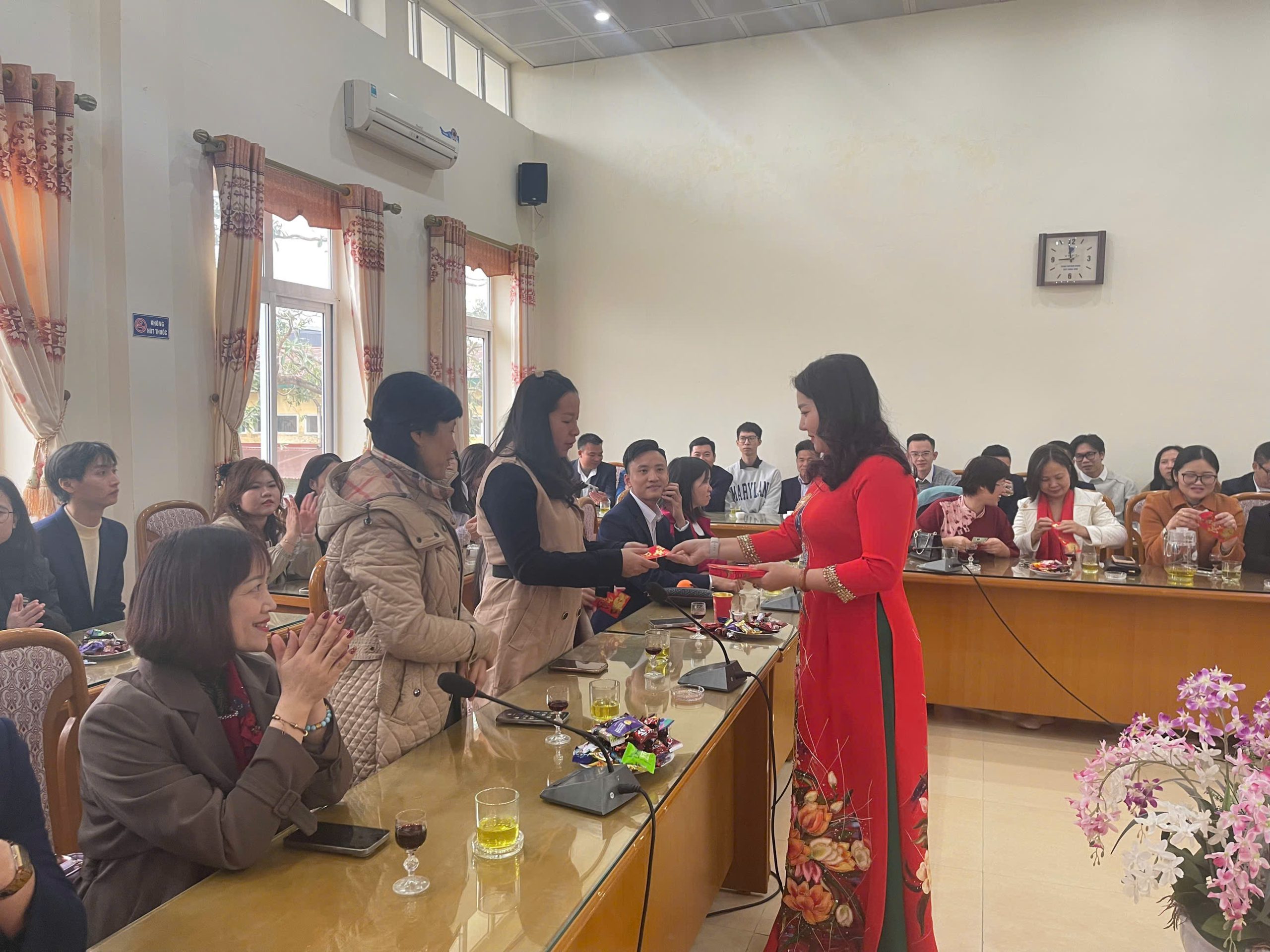 Ban giám hiệu tặng lì xì cho cán bộ, công nhân viên nhà trường