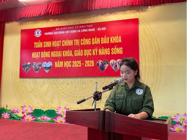 Thực hiện kế hoạch năm học 2025 – 2026, Trường Cao đẳng Xây dựng và Công nghệ – Xã hội tổ chức tuần sinh hoạt chính trị công dân đầu khóa, bồi dưỡng kỹ năng sống diễn ra từ ngày 11/8/2025 đến ngày 16/8/2025.
